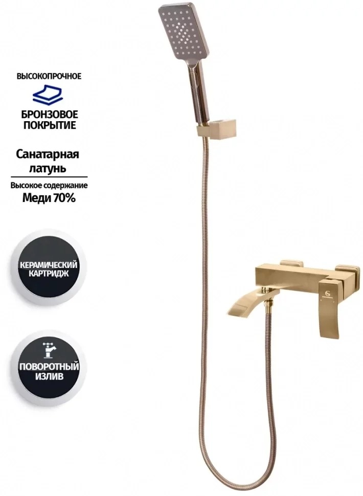 Смеситель для ванны Grocenberg GB8007BR с душевым гарнитуром, материал латунь, цвет бронза.
