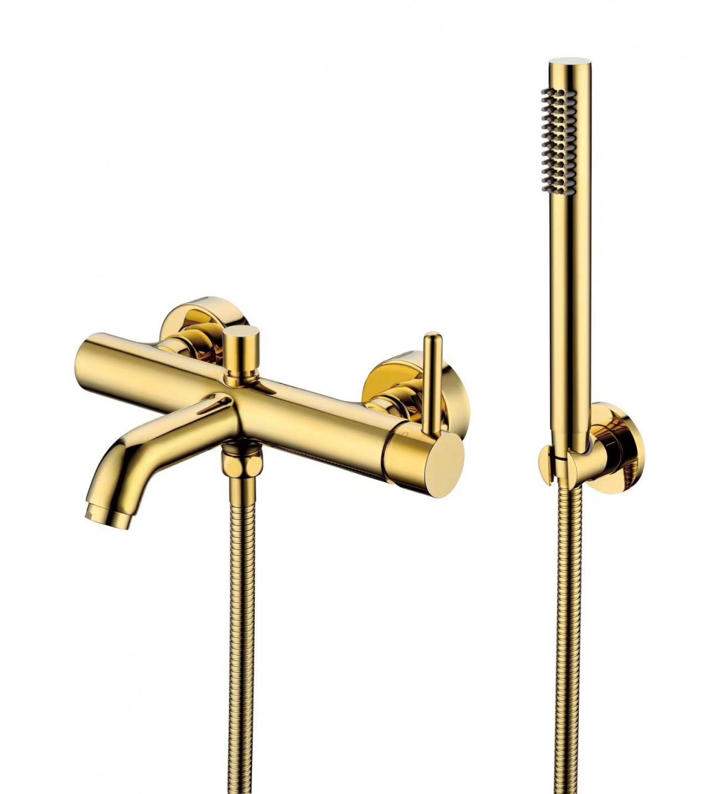 Смеситель для ванны Grocenberg GB8099GO с душевым гарнитуром, материал латунь, цвет золото.