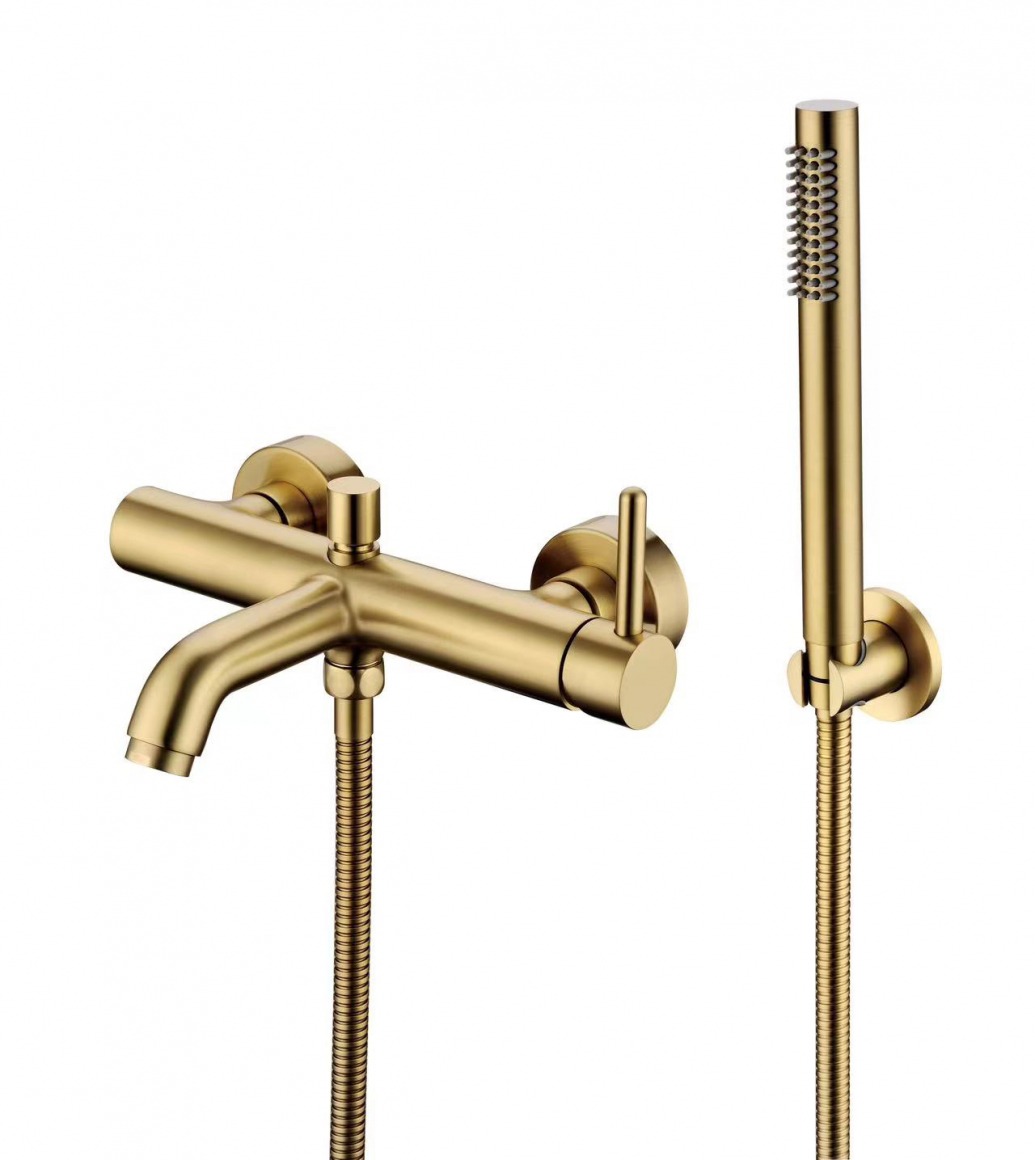 Смеситель для ванны Grocenberg GB8099MG с душевым гарнитуром, материал латунь, цвет матовое золото.