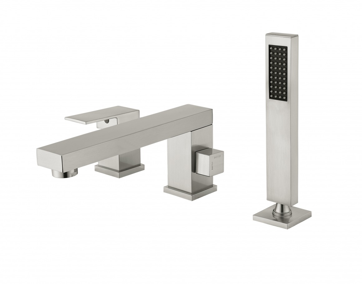 Смеситель для ванны Groсenberg GB6008NK, с выдвижным душем, на три отверстия, материал латунь, цвет никель.
