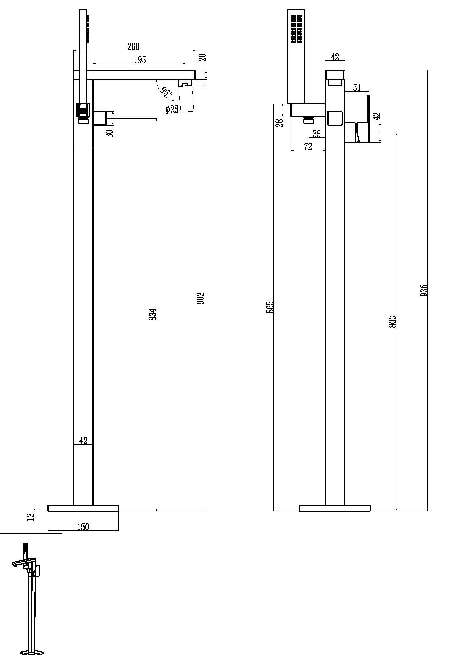 Смеситель для ванны напольный Boheme Qubic 479-BR с душевым гарнитуром, материал латунь, цвет бронза.