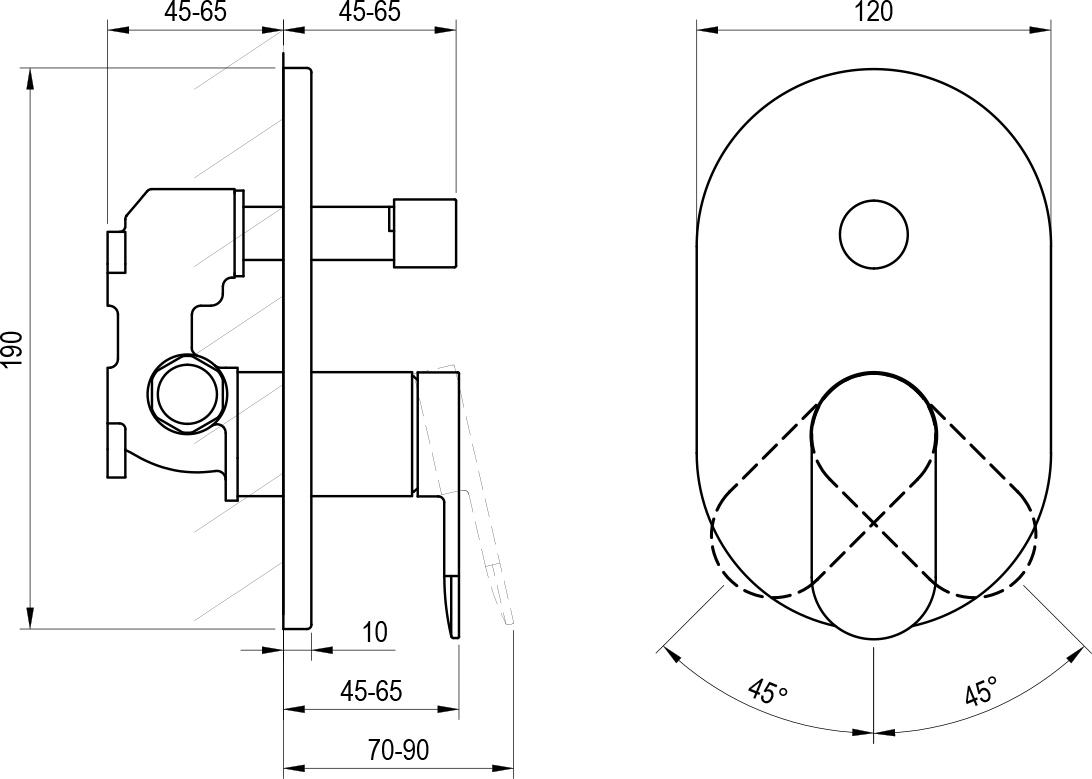 - рекомендуется: для ванн с переливом и душевой лейкой или для душевых кабин, оборудованных тропическим душем и душевой лейкой