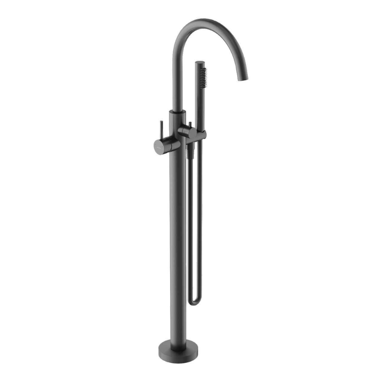 Смеситель для ванны Sancos Etna SC9009GG с душевым гарнитуром, количество режимов душевой лейки - 1, длина душевого шланга - 125 см, поворотный излив, материал - латунь, цвет - вороненая сталь.