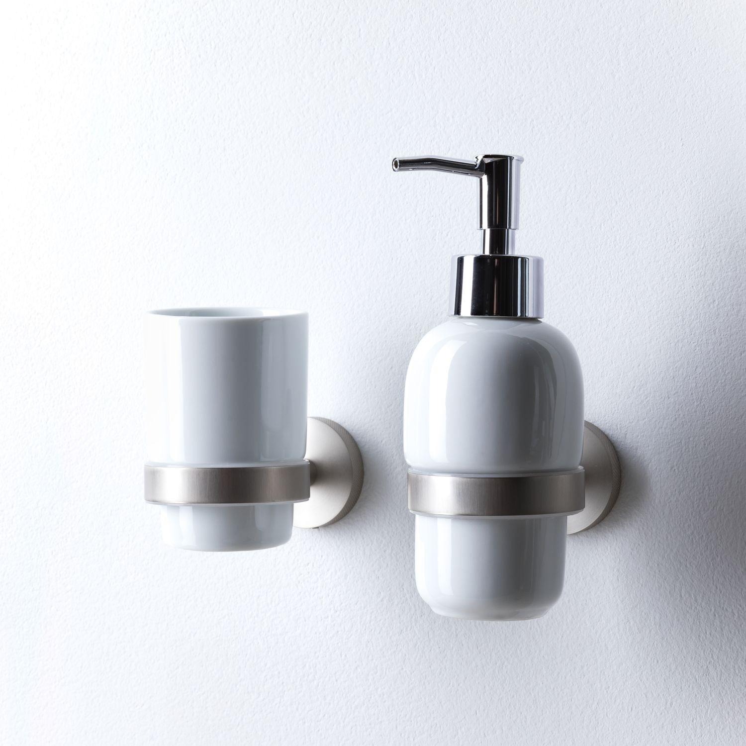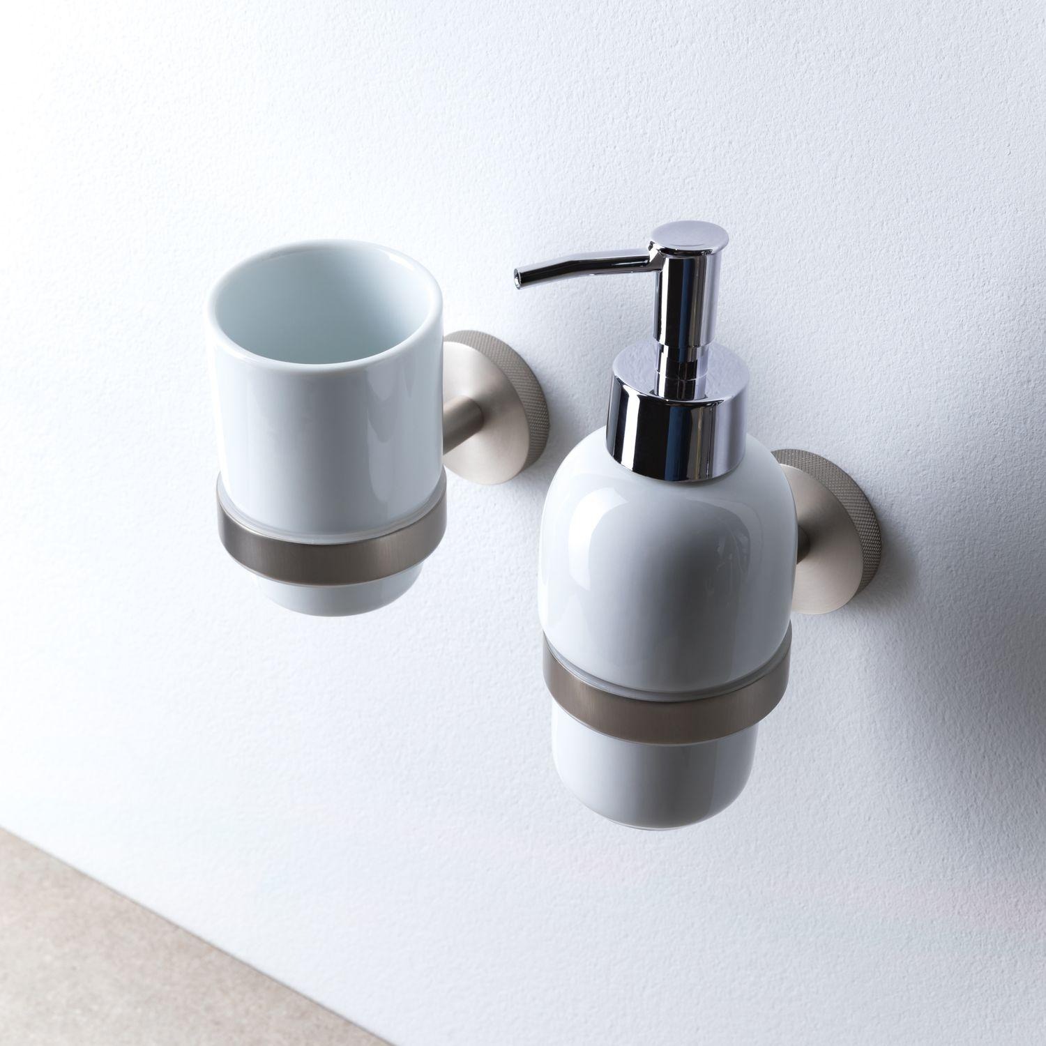 Стакан для зубных щеток Allen Brau Priority 6.31002-BN, материал латунь/керамика, цвет белый/никель браш.