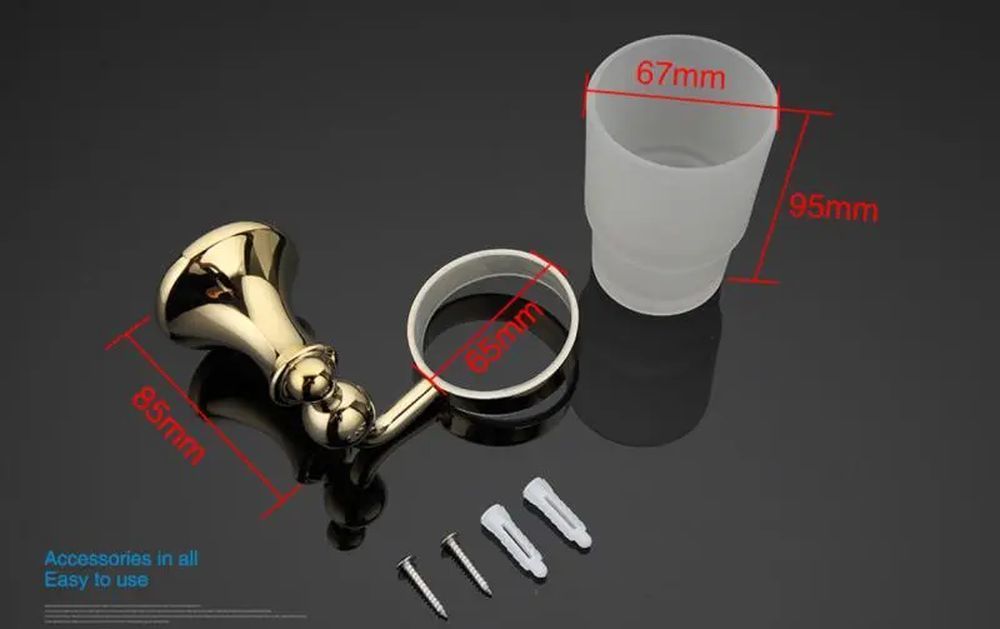 Стакан для зубных щеток Gappo G1406 с настенным держателем, материал металл/стекло, цвет золото.