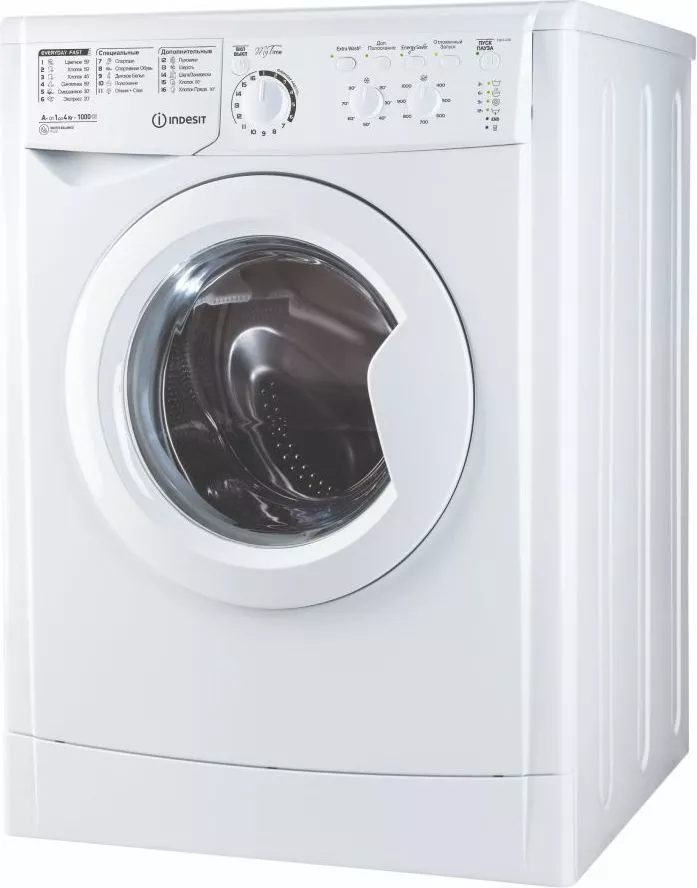 - Стиральная машина Indesit EWUC 4105 CIS вмещает 4 кг, чего вполне достаточно для повседневной стирки. Техника оснащена 16-ю программами, возможностью выбора желаемой температуры нагрева и скорости отжима. Удобные индикаторы на панели показывают все этапы работы.