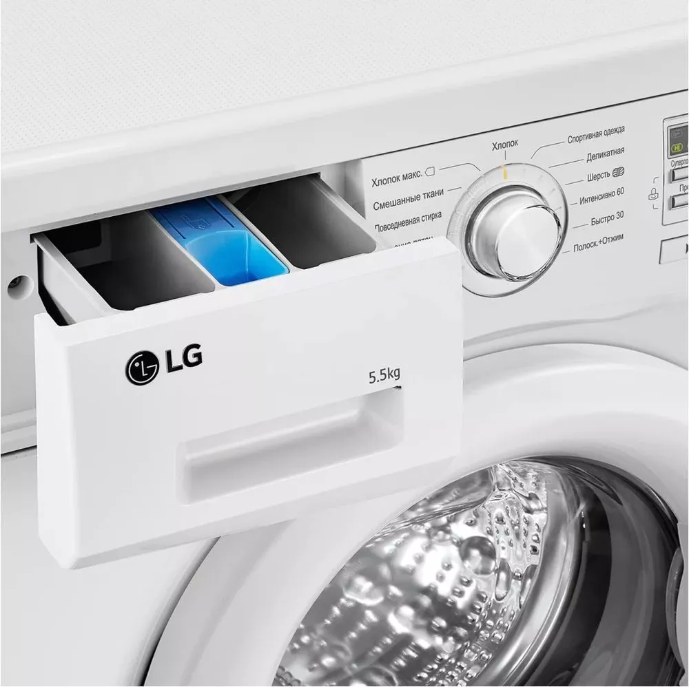 Автоматическая стиральная машина LG F10B8MD с фронтальной загрузкой белья. За один цикл устройство обрабатывает до 5.5 кг белья. Максимальная скорость оборотов барабана в режиме отжима не превышает 1000 оборотов в минуту.
