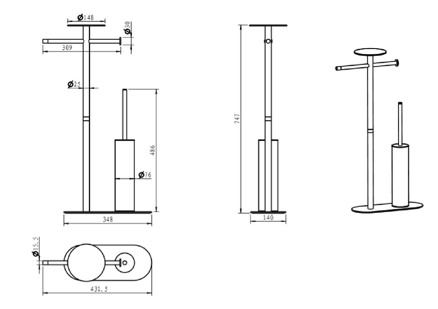 Стойка с полотенцедержателем и ёршиком Boheme Venturo 10953-CB, цвет брашированная медь