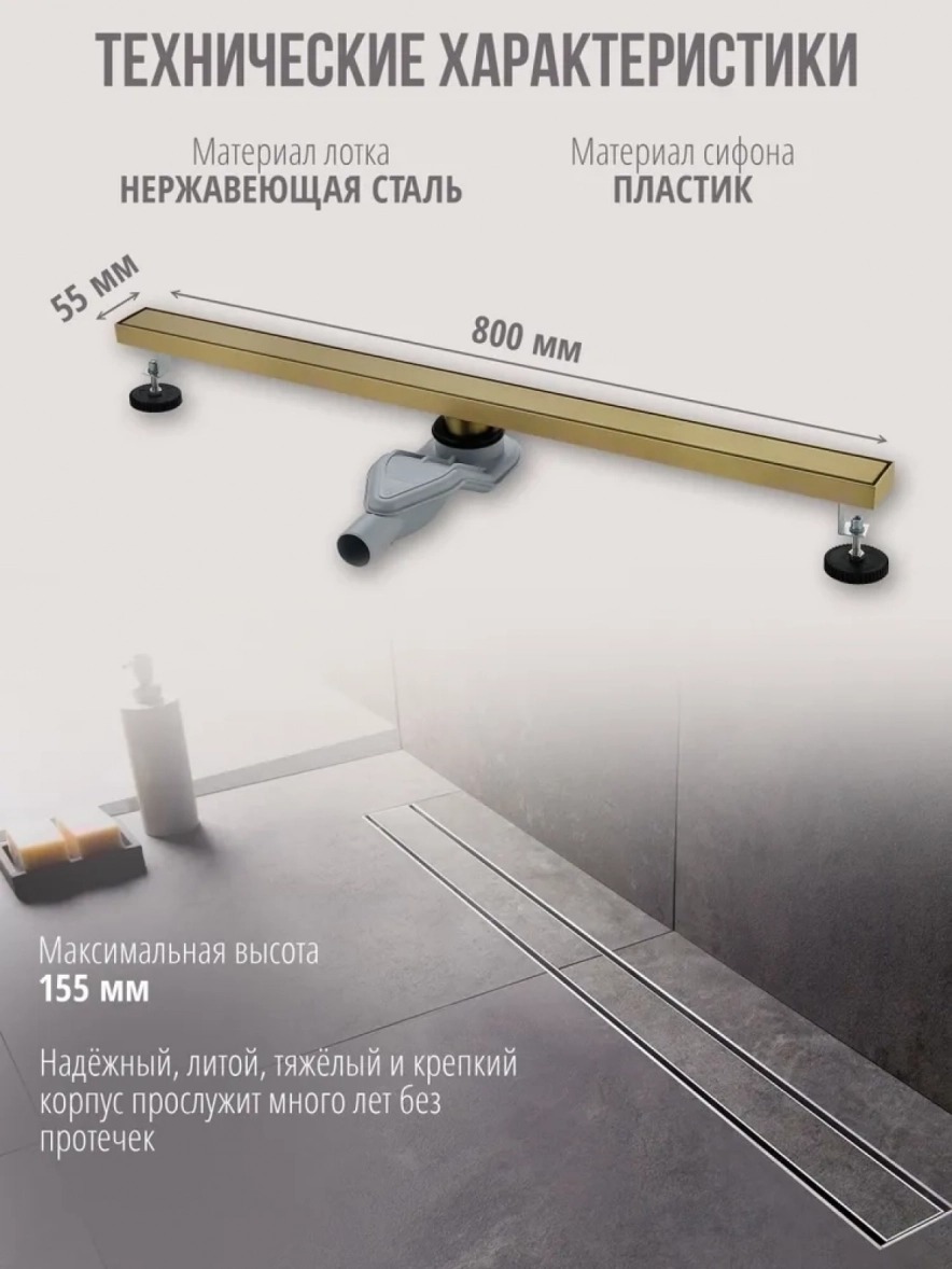 Трап Grocenberg 80 см T800MG, матовое золото (под плитку)