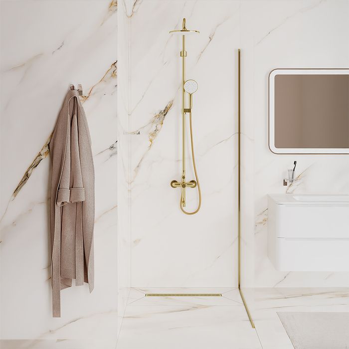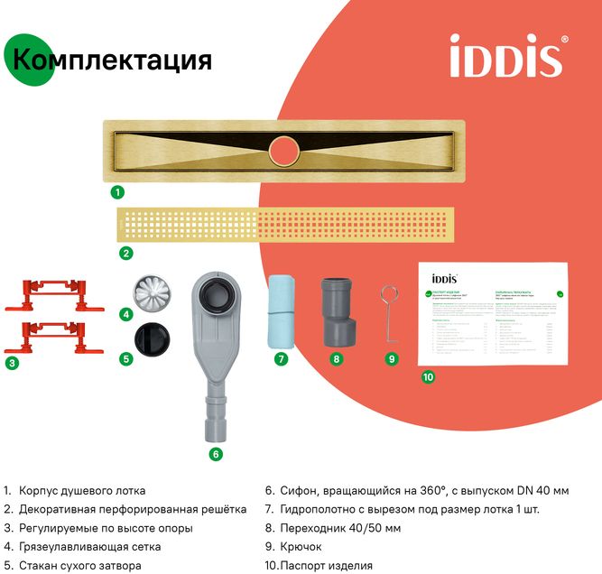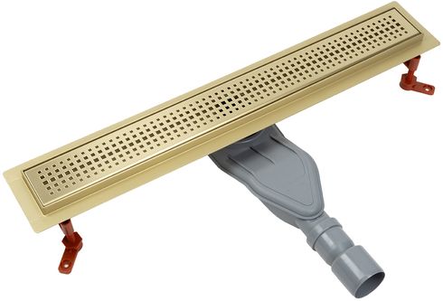 Душевой лоток IDDIS® в золотом цвете с горизонтальным выпуском и сифоном 360° предназначен для отведения воды в канализацию из зоны принятия душа. Он заменит традиционные поддоны с бортиками, предлагая универсальный дизайн решетки и возможности для создания стильного интерьера ванной комнаты. Длина решетки — 600 мм; подходит для плитки толщиной до 12 мм.