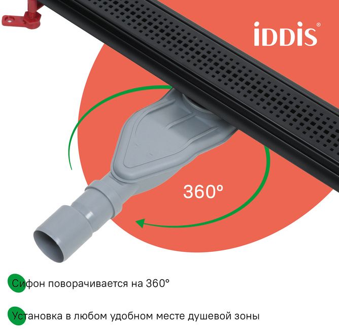 Душевой лоток IDDIS® в черном цвете с горизонтальным выпуском и сифоном 360° предназначен для отведения воды в канализацию из зоны принятия душа. Он заменит традиционные поддоны с бортиками, предлагая универсальный дизайн решетки и возможности для создания стильного интерьера ванной комнаты. Длина решетки — 700 мм; подходит для плитки толщиной до 12 мм.