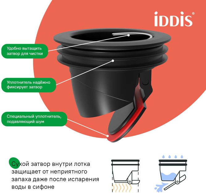- Оснащен сухим затвором, защищающим от неприятного запаха даже после испарения воды в сифоне.