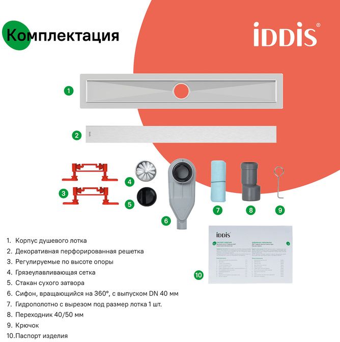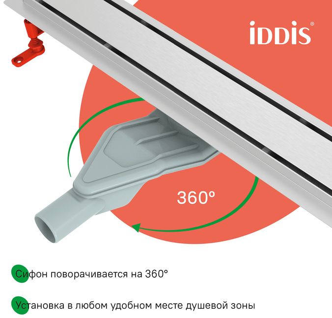 Душевой лоток IDDIS® с двусторонней решеткой, горизонтальным выпуском и сифоном 360° предназначен для отведения воды в канализацию из зоны принятия душа. Он заменит традиционные поддоны с бортиками, предлагая универсальный дизайн решетки и возможности для создания стильного интерьера ванной комнаты. Длина решетки — 700 мм; подходит для плитки толщиной до 12 мм. Цвет – матовый хром.