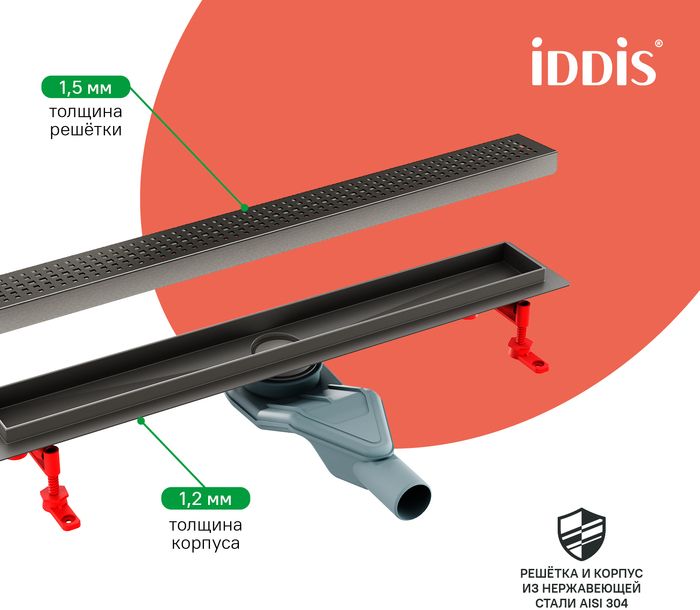 Душевой лоток IDDIS® в цвете графит с горизонтальным выпуском и сифоном 360° предназначен для отведения воды в канализацию из зоны принятия душа. Он заменит традиционные поддоны с бортиками, предлагая универсальный дизайн решетки и возможности для создания стильного интерьера ванной комнаты. Длина решетки — 800 мм; подходит для плитки толщиной до 12 мм.