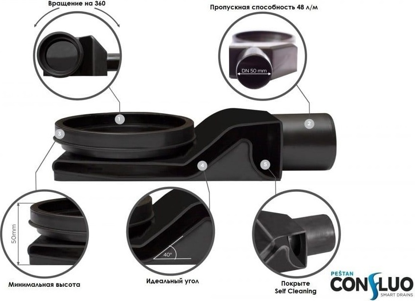 - S-образный сифон разработанный с высокой степенью функциональности, предотвращает проникновение запахов из канализации