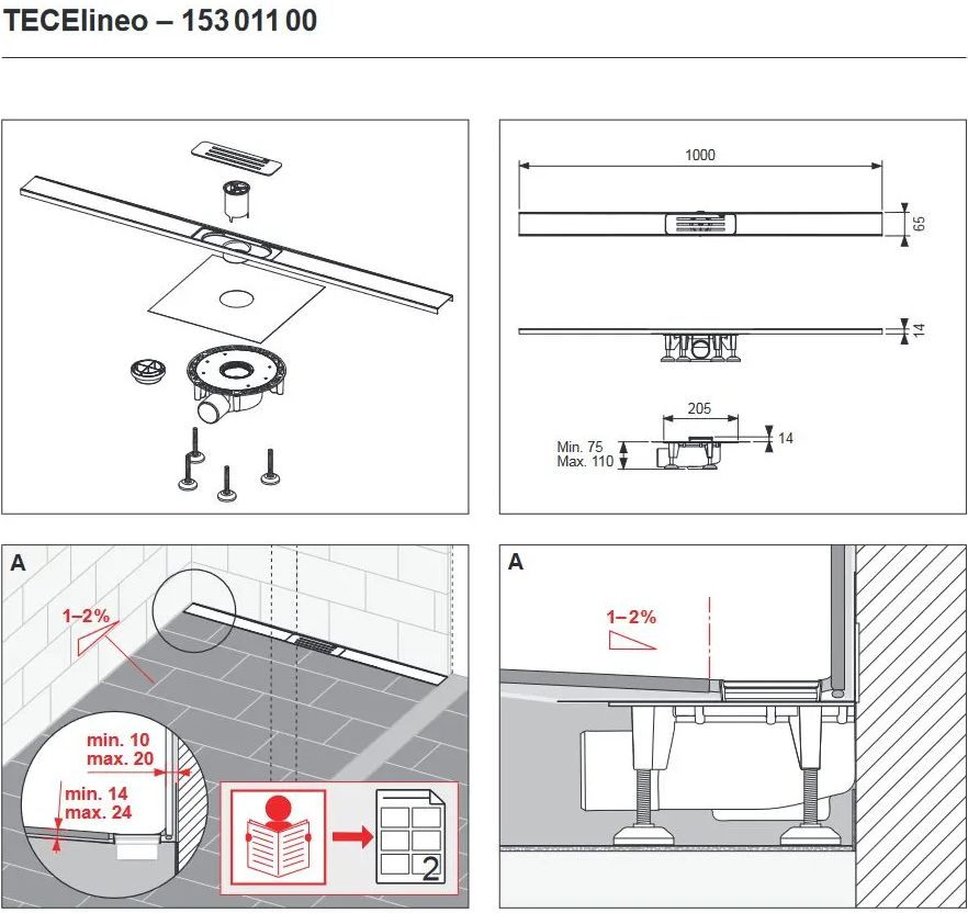 Характеристики трап линейный TECE (15301100)