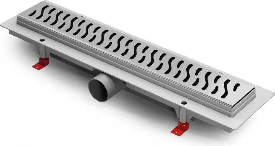 В комплект входит самоклеящаяся гидроизоляционная пленка, сетка для сбора волос, регулируемые ножки, комплект креплений, пластиковый ключ для снятия нержавеющей решетки и инструкция по установке.