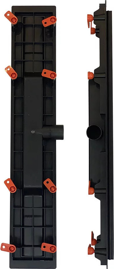 В комплект входит самоклеящаяся гидроизоляционная пленка, сетка для сбора волос, регулируемые ножки, комплект креплений, пластиковый ключ для снятия нержавеющей решетки и инструкция по установке.