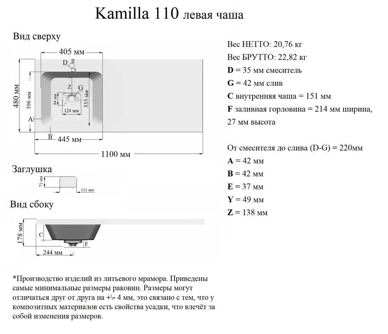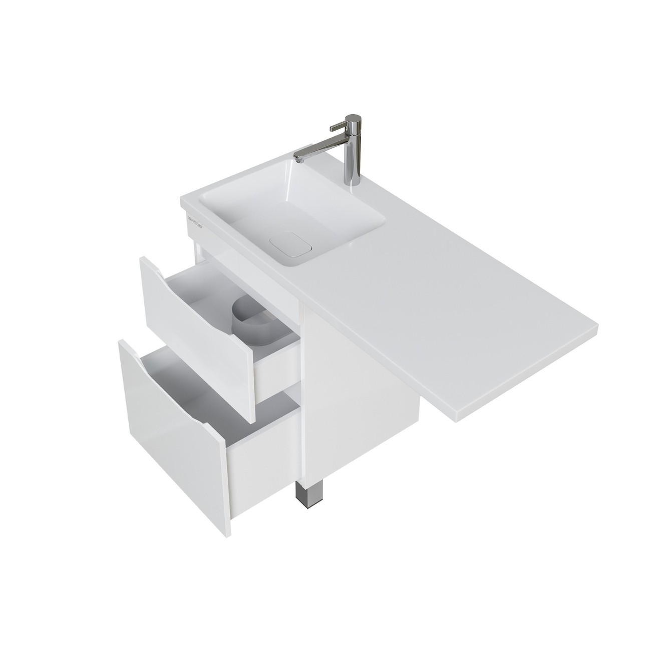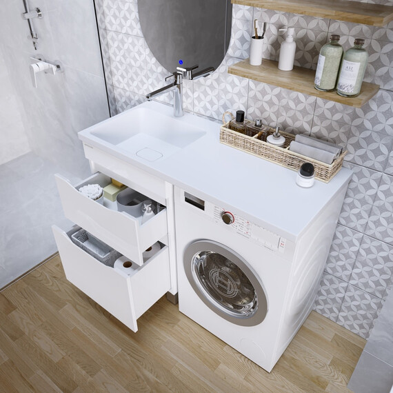 Тумба напольная Grossman Вилар 50 см с раковиной Камилла 110 см, левая, материал раковины искусственный мрамор, кронштейн в комплекте, цвет белый глянец.
