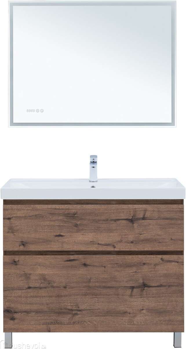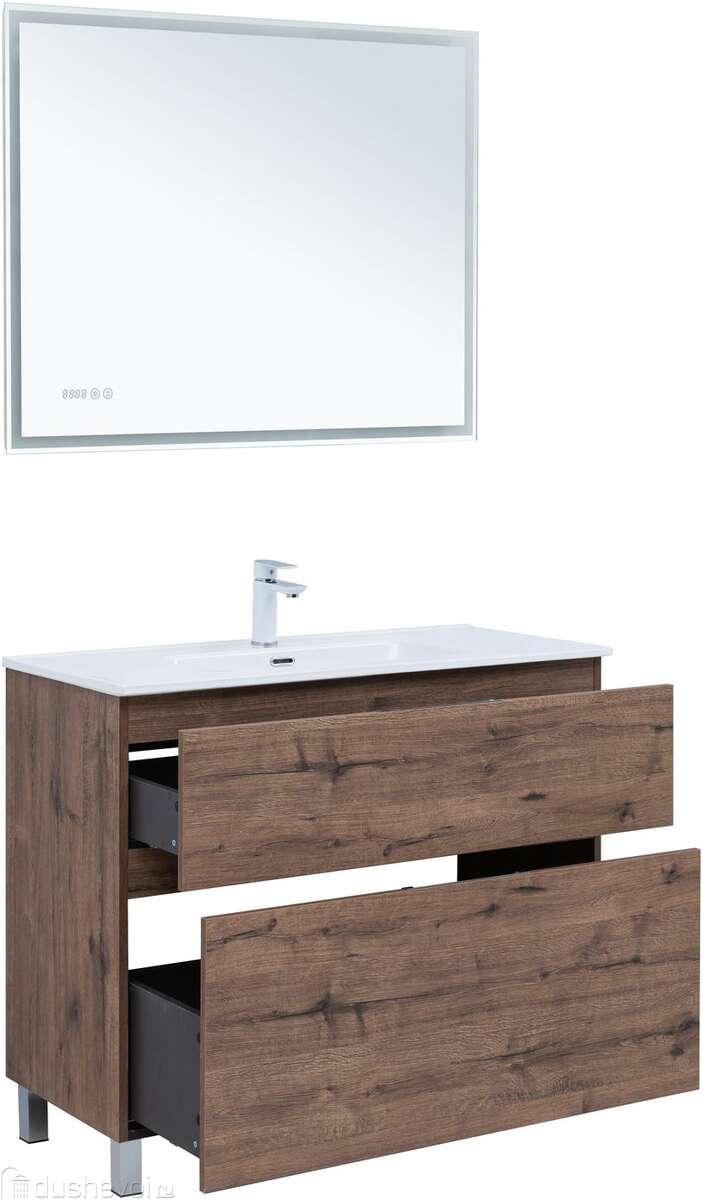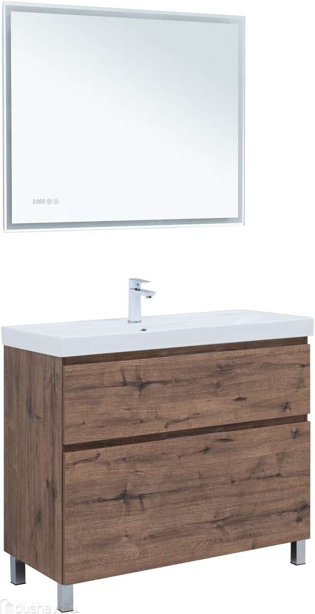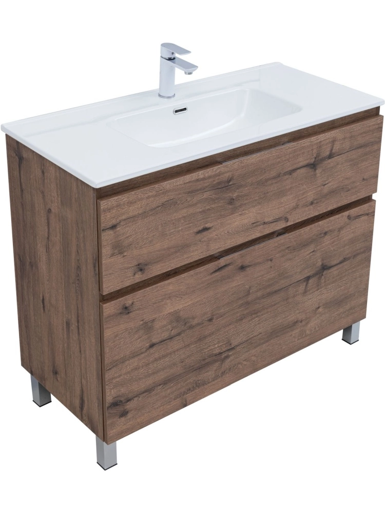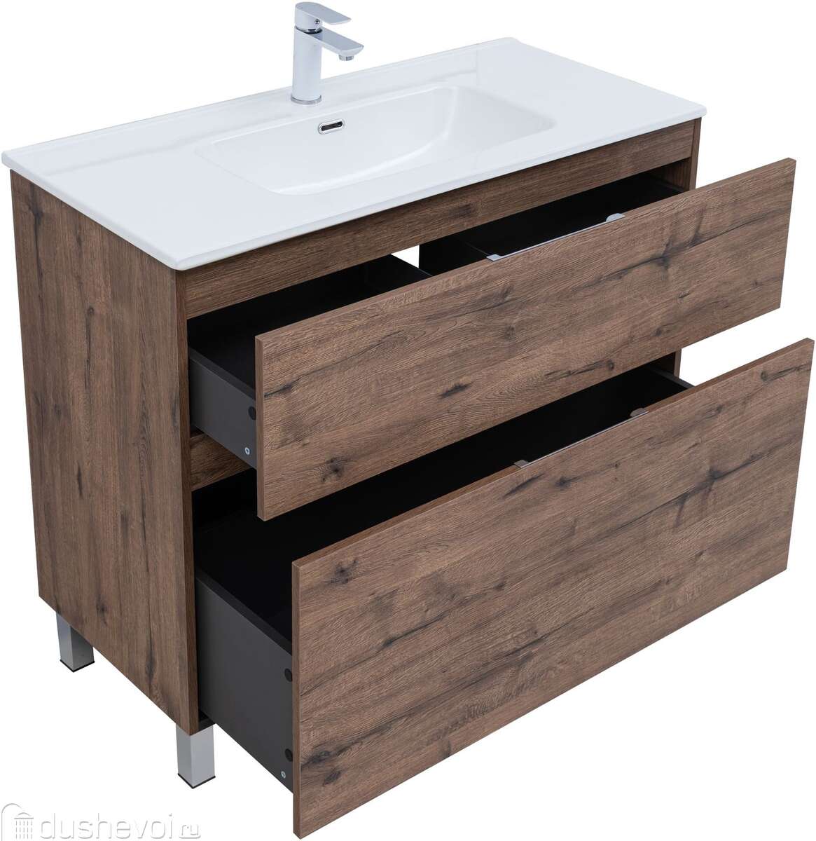 Тумба напольная Aquanet Алвита New 100 см с раковиной Aquanet Flat 100 см, 2 ящика, цвет дуб веллингтон табак.
