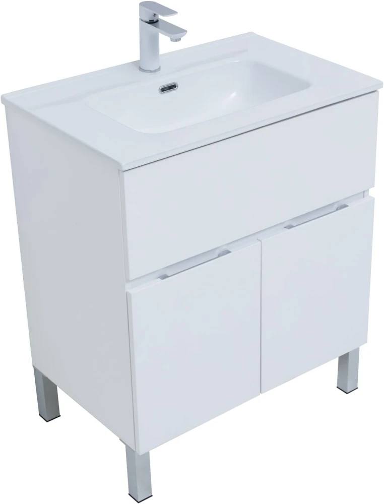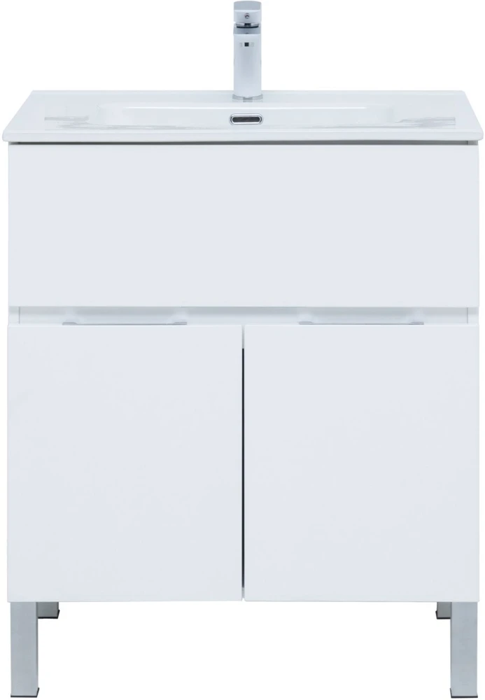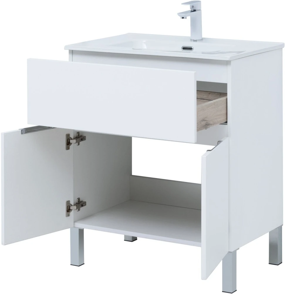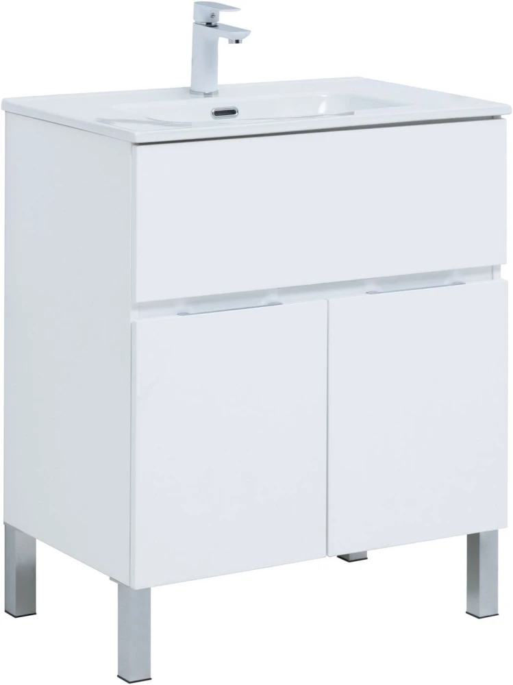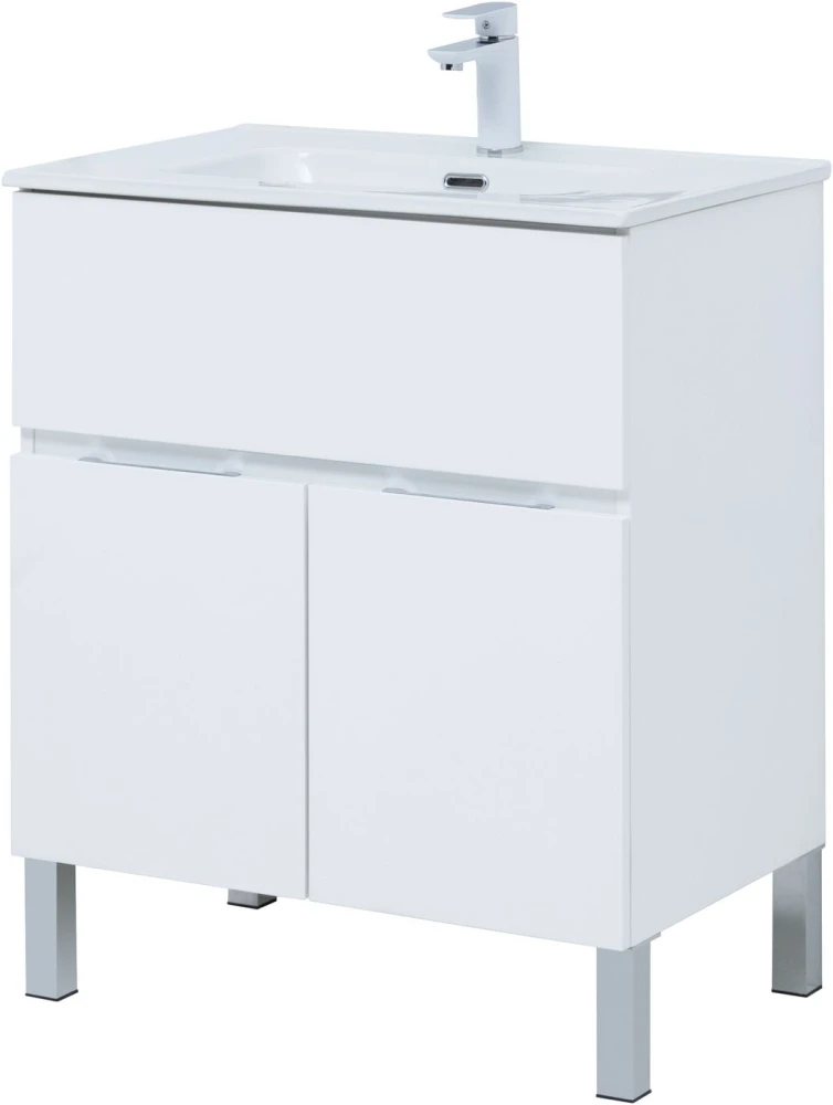 Тумба напольная Aquanet Алвита New 70 см с раковиной Aquanet Flat 70 см, 1 выдвижной ящик, 2 дверцы, цвет белый матовый.