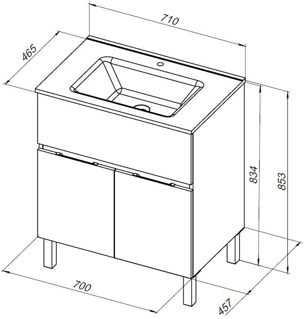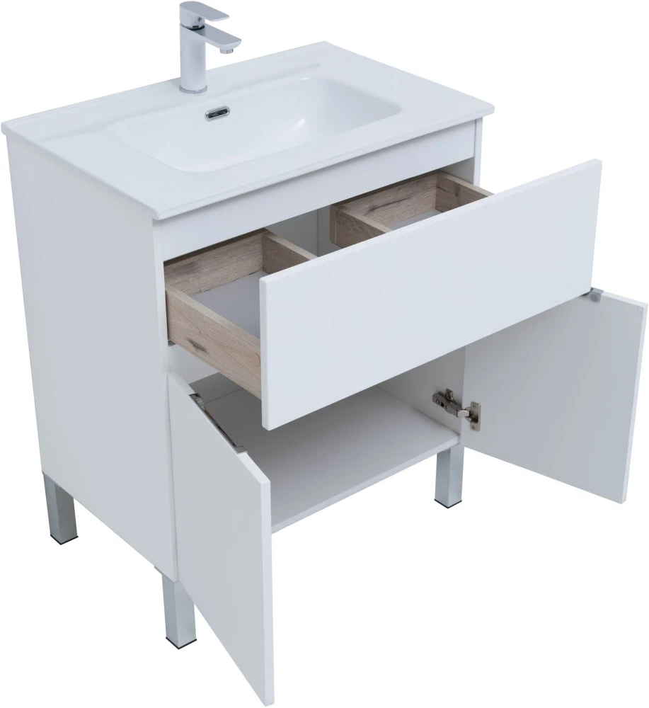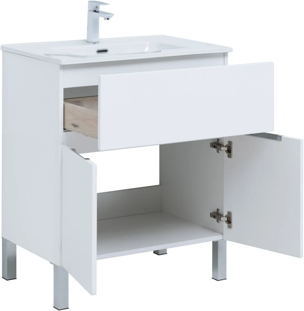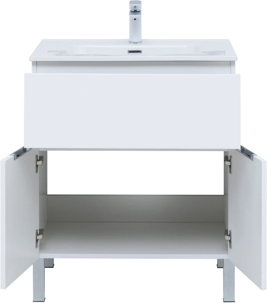 Тумба напольная Aquanet Алвита New 70 см с раковиной Aquanet Flat 70 см, 1 выдвижной ящик, 2 дверцы, цвет белый матовый.