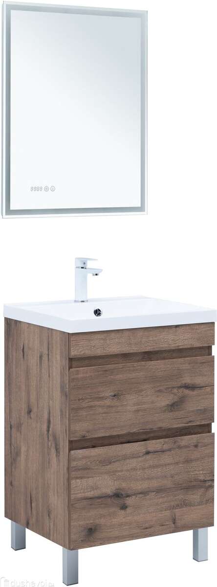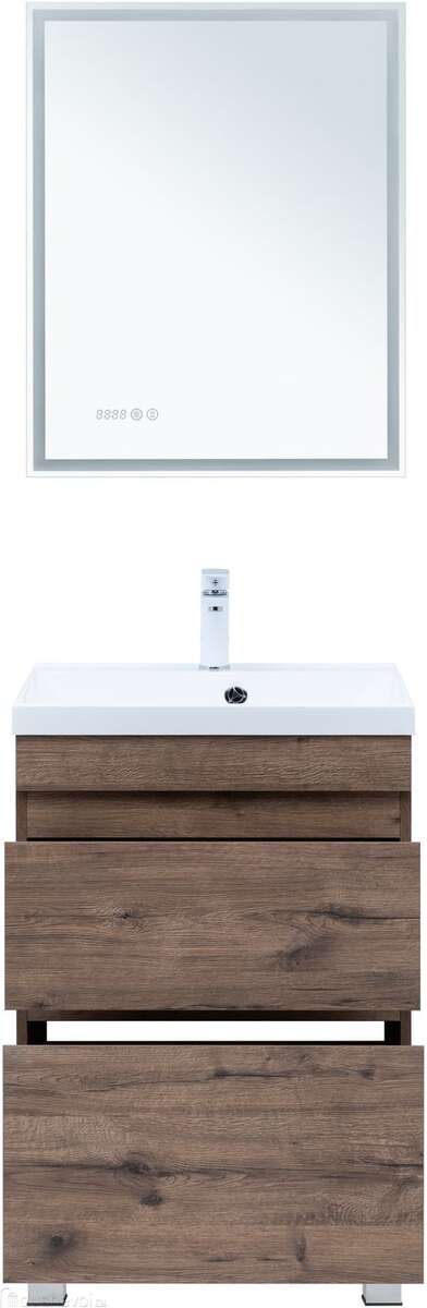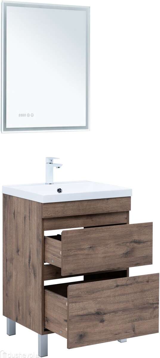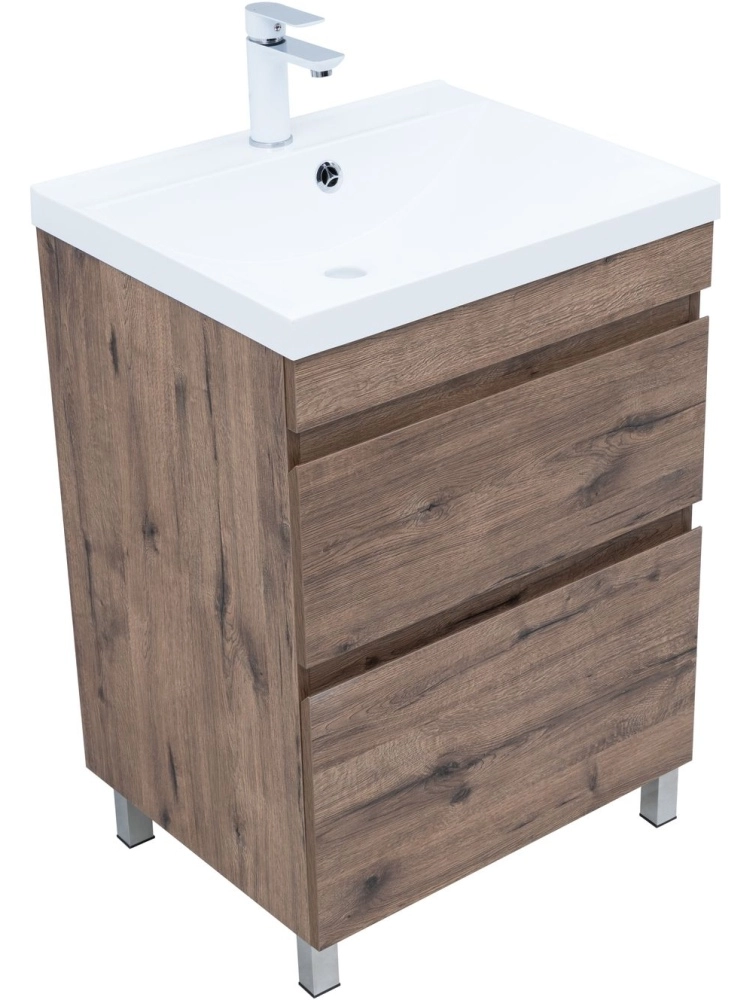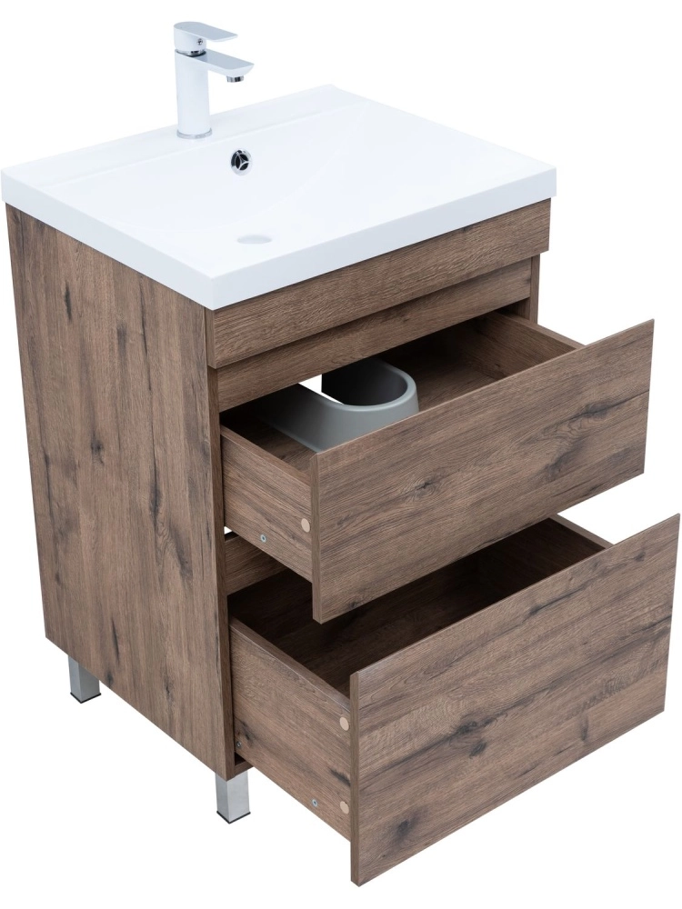 Тумба напольная Aquanet Нота New 60 см с раковиной Aquanet Нота 58 см, 2 ящика, цвет дуб веллингтон табак.