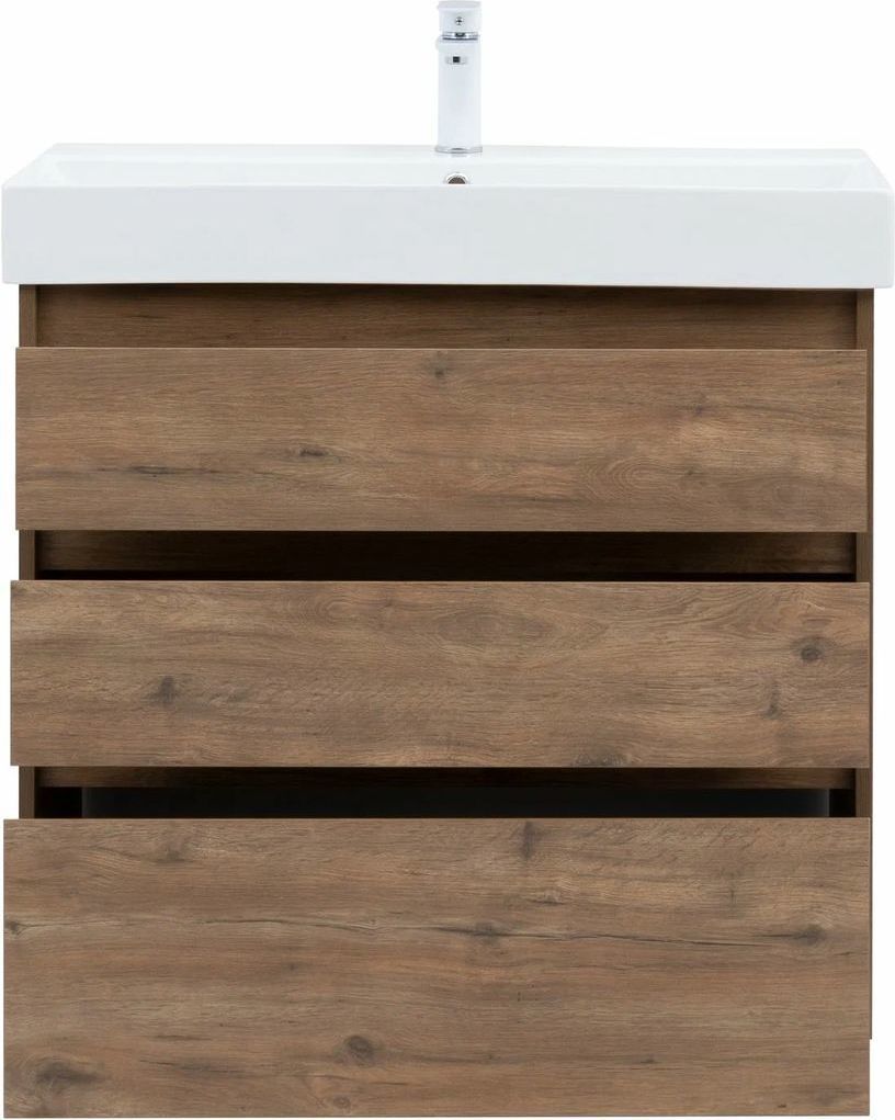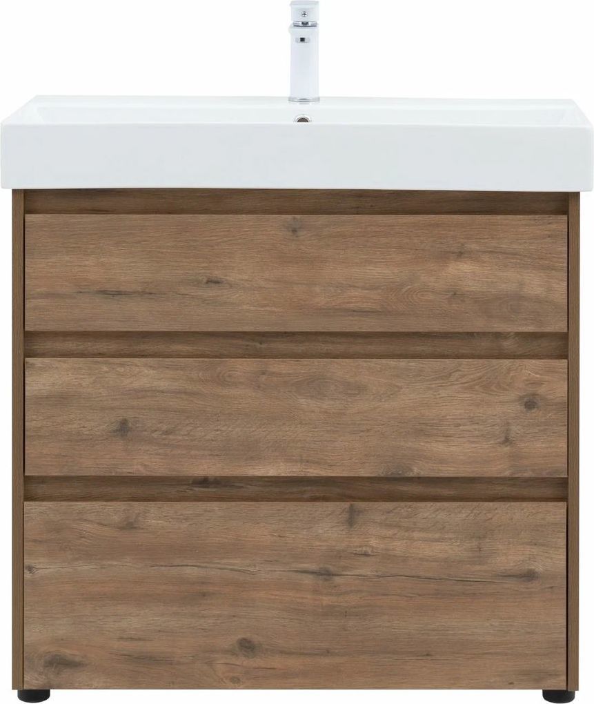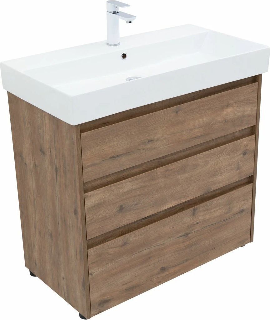 Тумба напольная Aquanet Nova Lite 85 см с раковиной Sanovit Slim Synergy 85 17085-KL, 3 ящика, цвет дуб рустикальный.