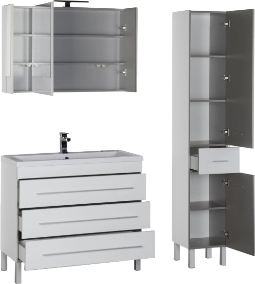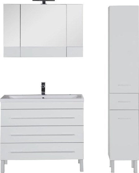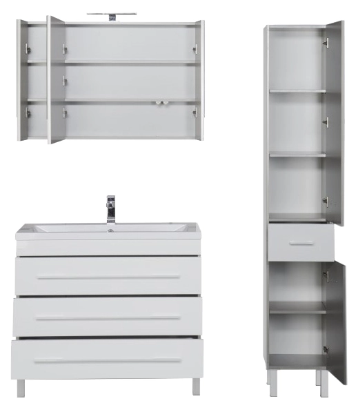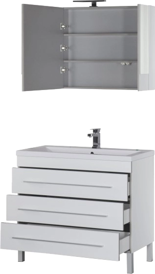 Тумба напольная Aquanet Верона 100 см с раковиной Florentina Анита 100 см 10.150.01000.001, 3 ящика, цвет белый.