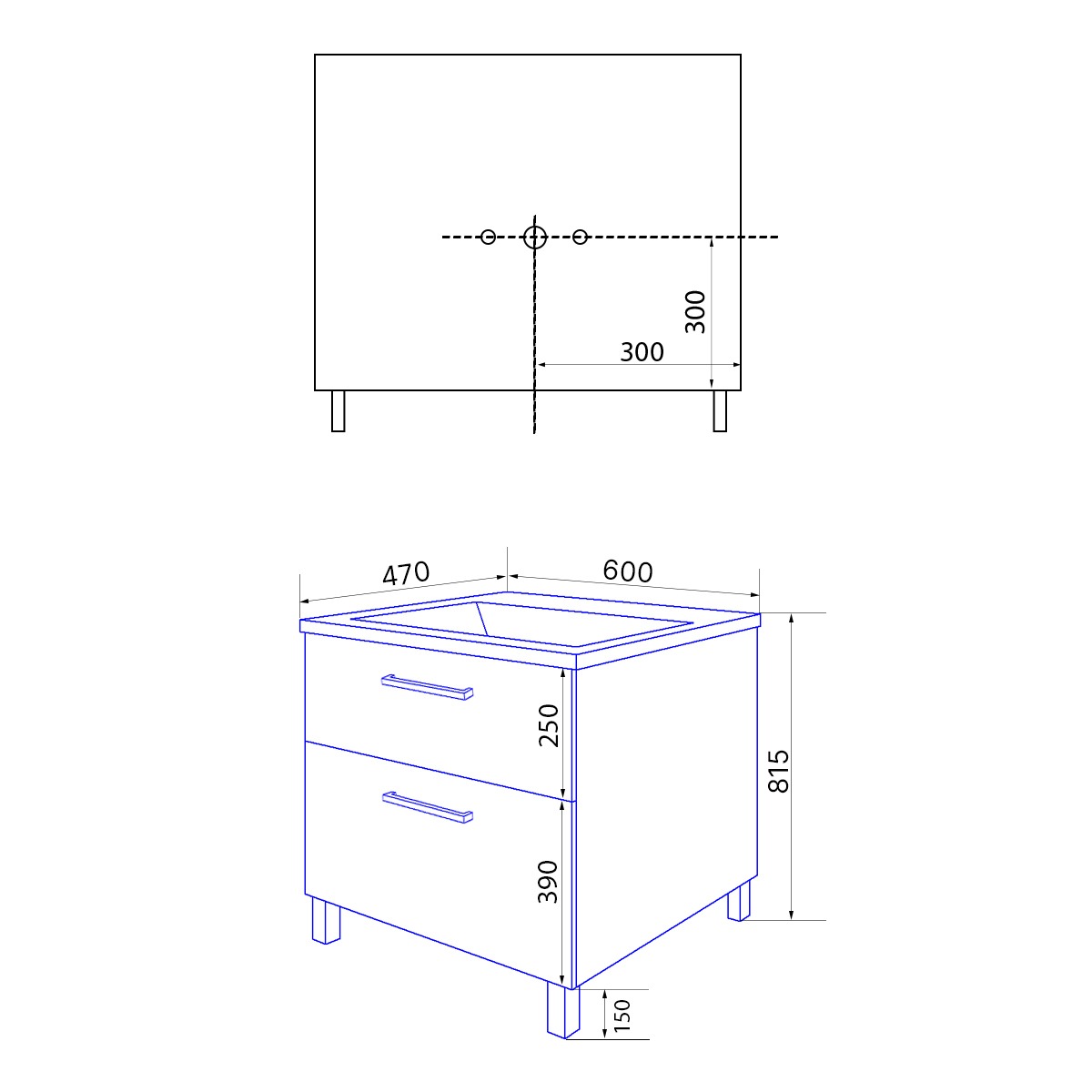 - Размеры: Компактные габариты тумбы (600х470х815 мм) позволяют ей идеально вписаться даже в небольшие ванные комнаты, при этом обеспечивая достаточно места для хранения.