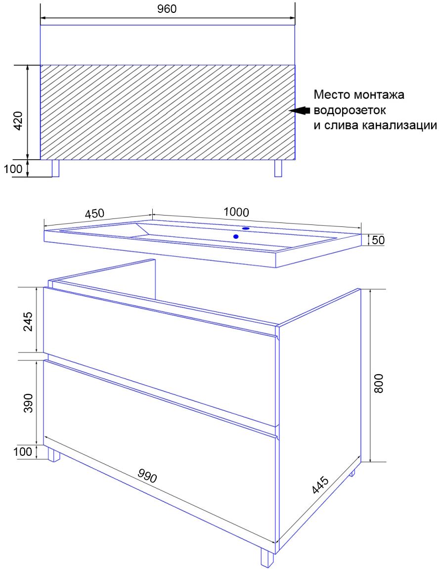 Тумба напольная Azario Viola 100/2H с раковиной Астория 100 см, цвет фисташковый.