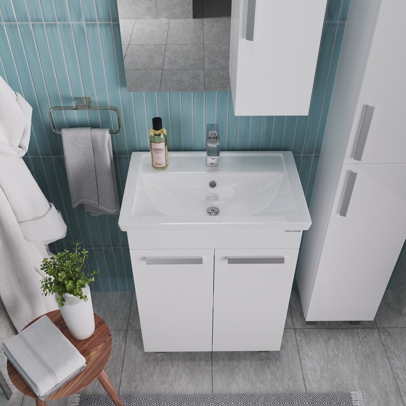 Тумба напольная Grossman Нео 70 см с раковиной Фостер 70 см, цвет белый.
