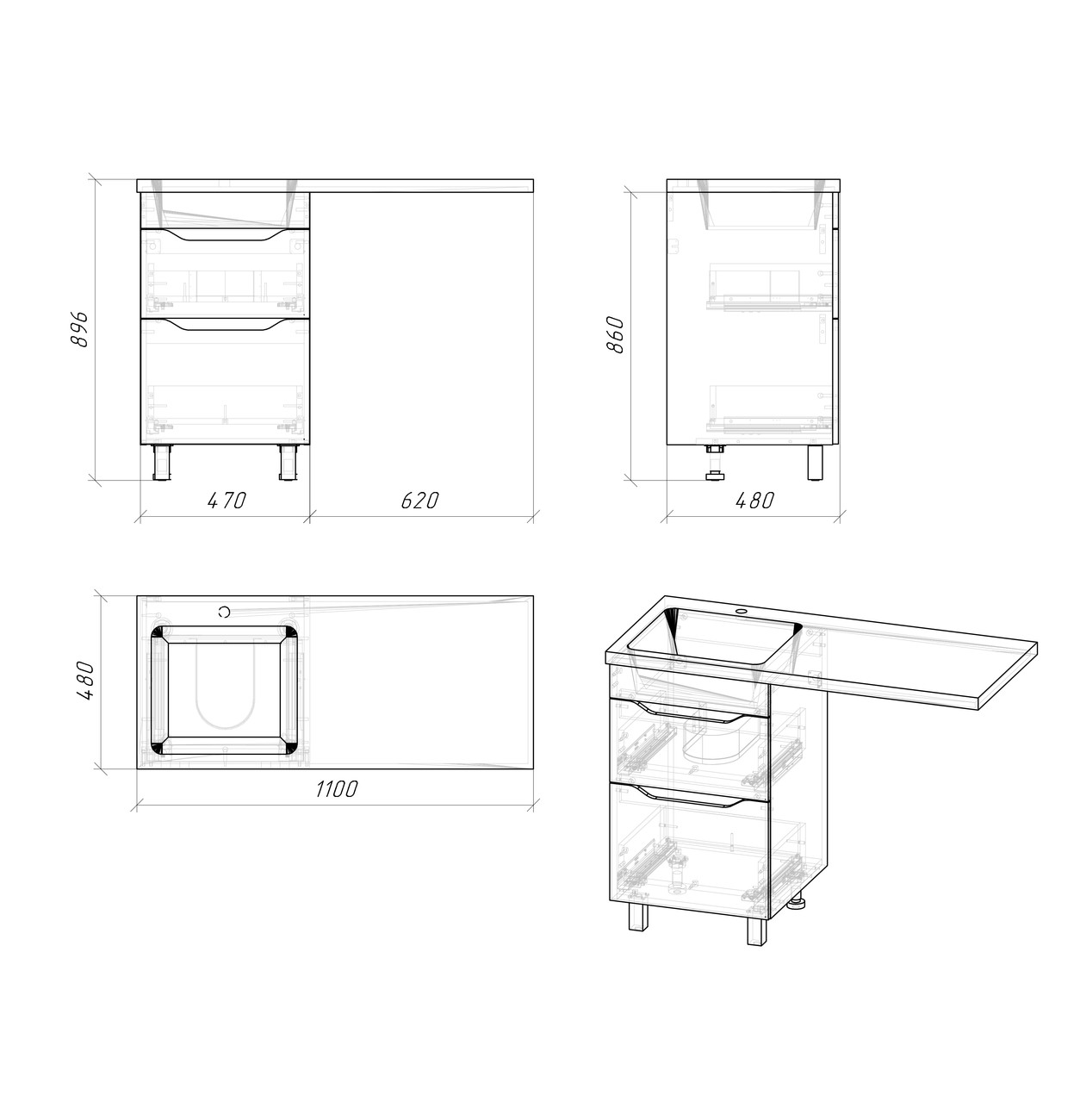 - тумба с раковиной-столешницей