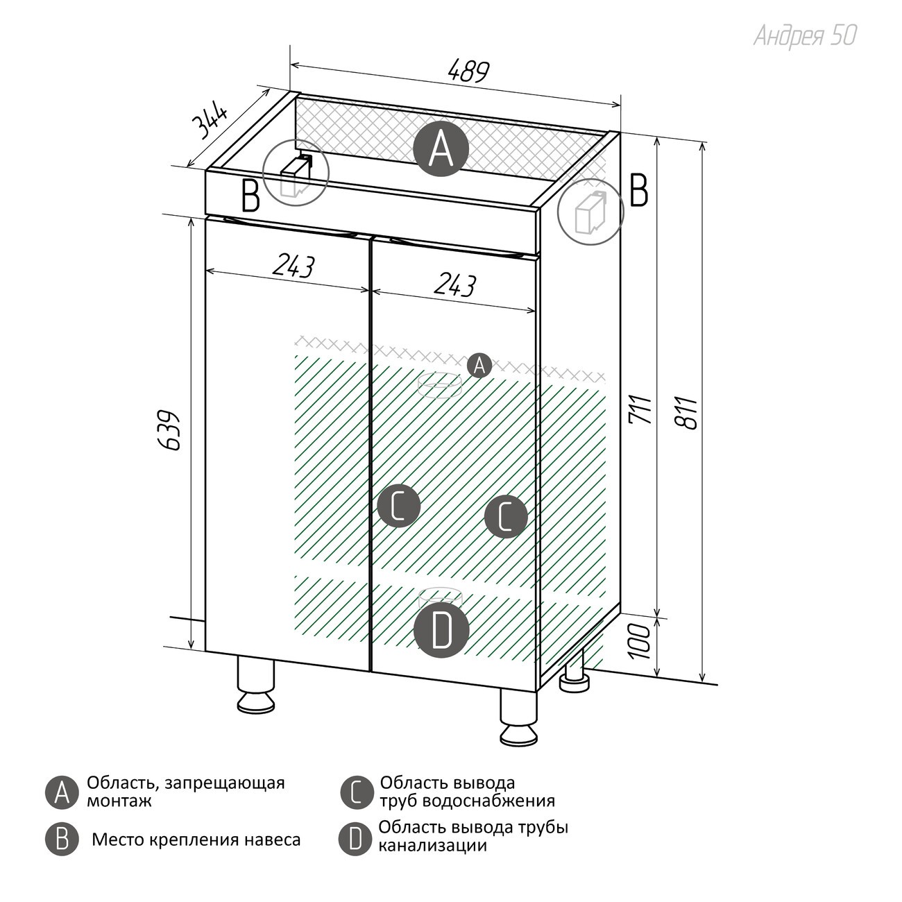 Тумба напольная с раковиной Grossman Виста 50 см 105063