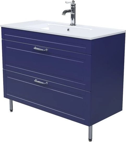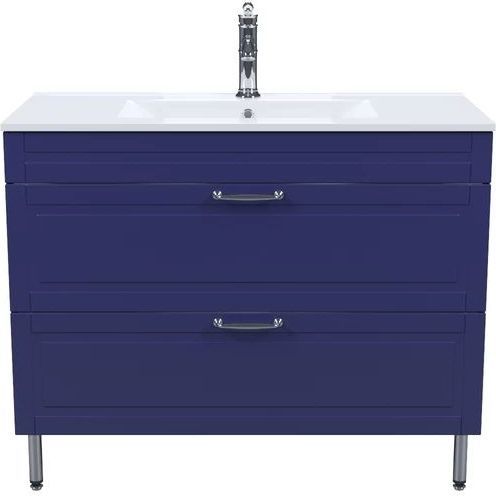 - Вместительная напольная тумба Oxford в красивом синем оттенке – модное сочетание классического стиля и стиля ретро. Она органично впишется в интерьер благодаря элегантному фрезерованному фасаду и узнаваемому дизайну. В комплекте плоский эргономичный умывальник.