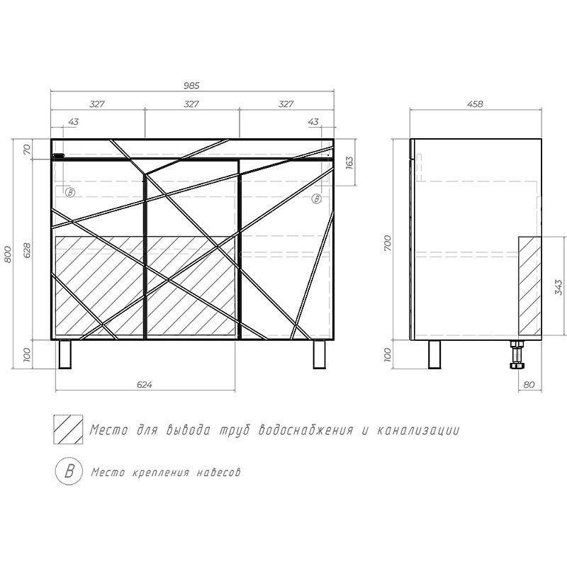- Мебель устанавливается на ножках с возможностью регулирования по высоте, что позволяет нивелировать неровность пола.