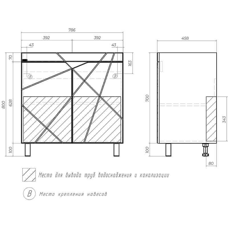 - Мебель устанавливается на ножках с возможностью регулирования по высоте, что позволяет нивелировать неровность пола.