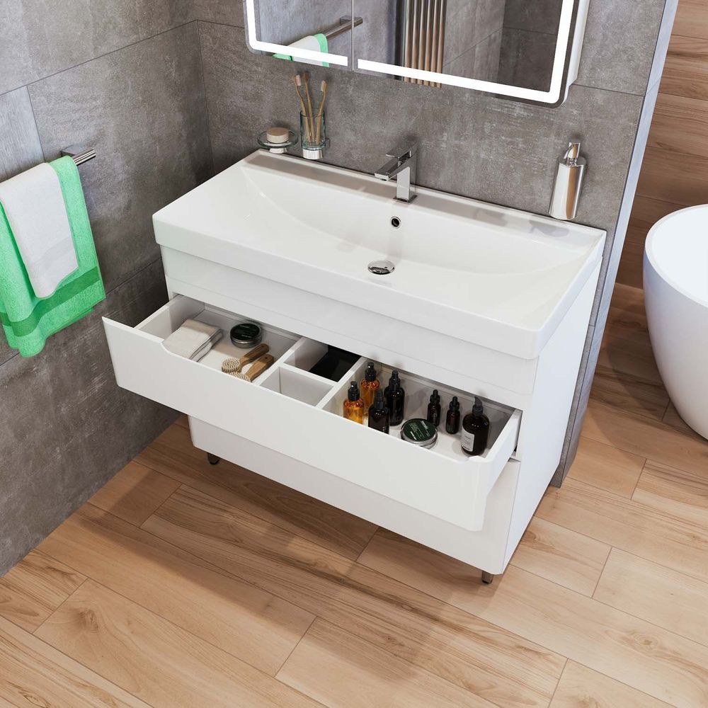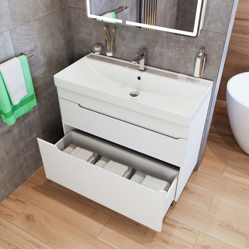 Тумба напольная с раковиной Mirsant Flat 80/2 80 см c раковиной Line 80, цвет белый.
