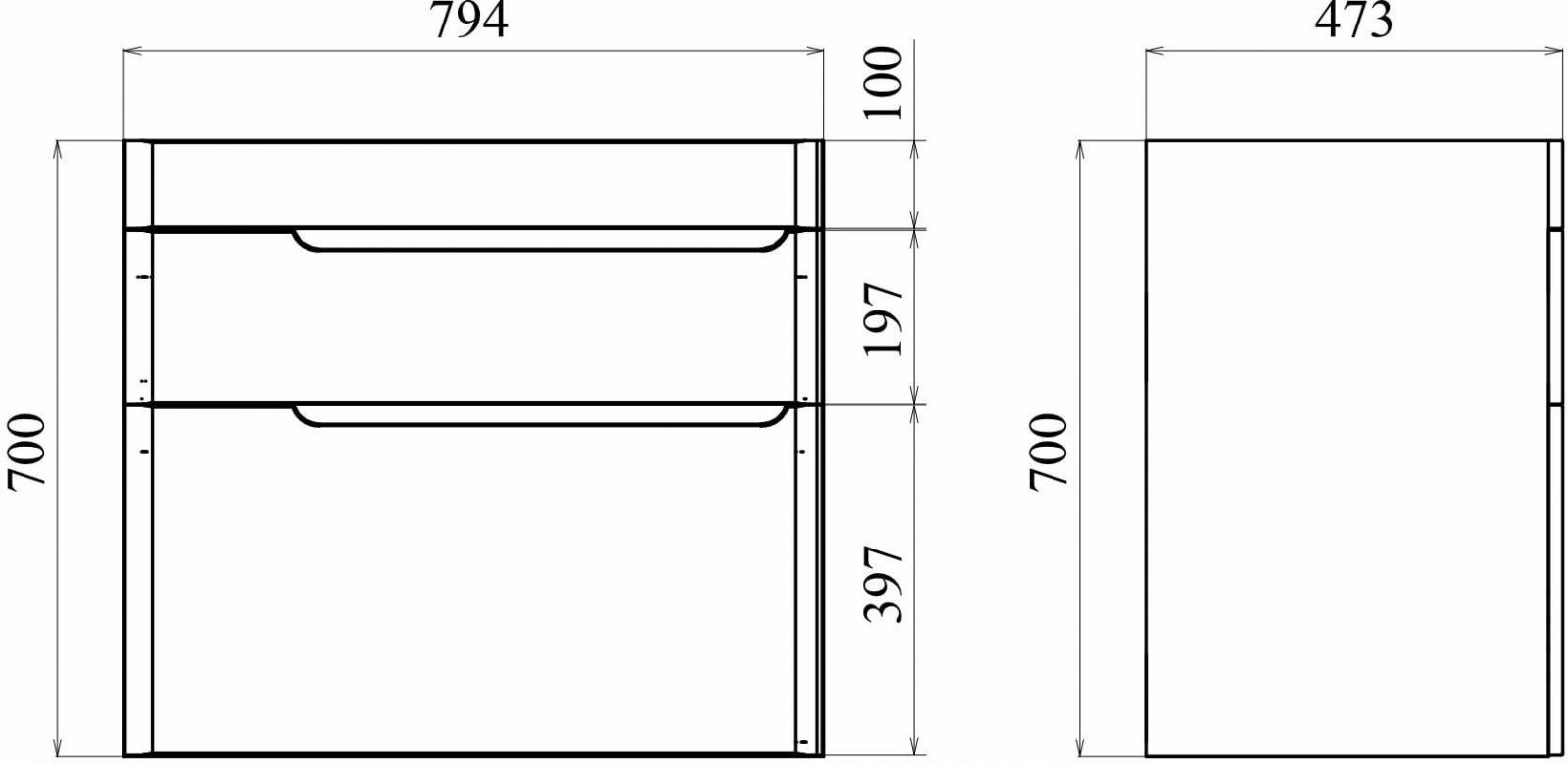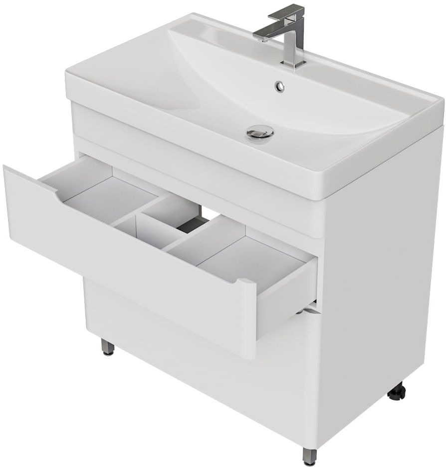 Тумба напольная с раковиной Mirsant Flat 80/2 80 см (раковина Line 80) белый