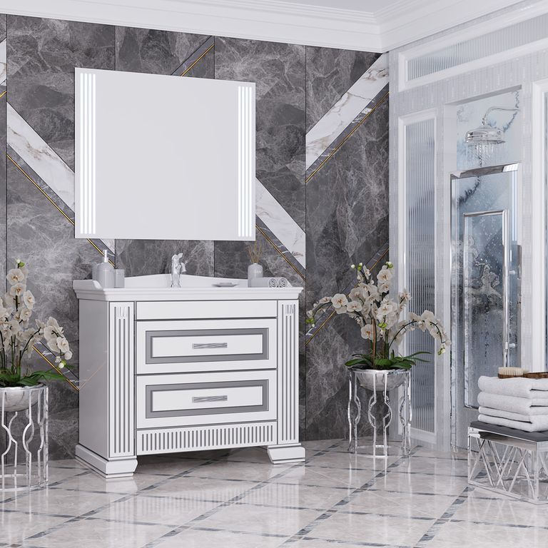 Тумба напольная с раковиной Opadiris Оникс 100 см, белый глянцевый/серебряная патина