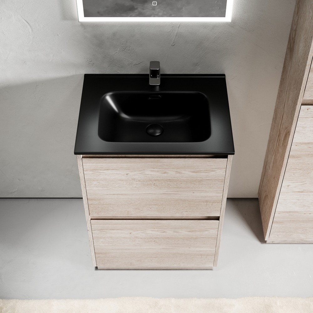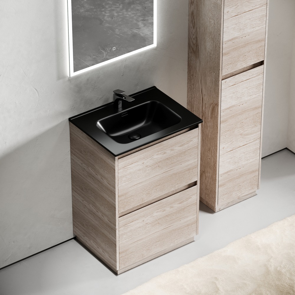 Тумба напольная Sancos Libra Floor 60 см LB60FEG с доводчиком и раковиной Element CN7001MB, цвет дуб галифакс натуральный.