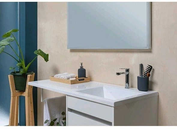 - Корпус тумбы выполнен из влагостойкого ЛДСП, а фасады – из МДФ с покрытием эмалью.