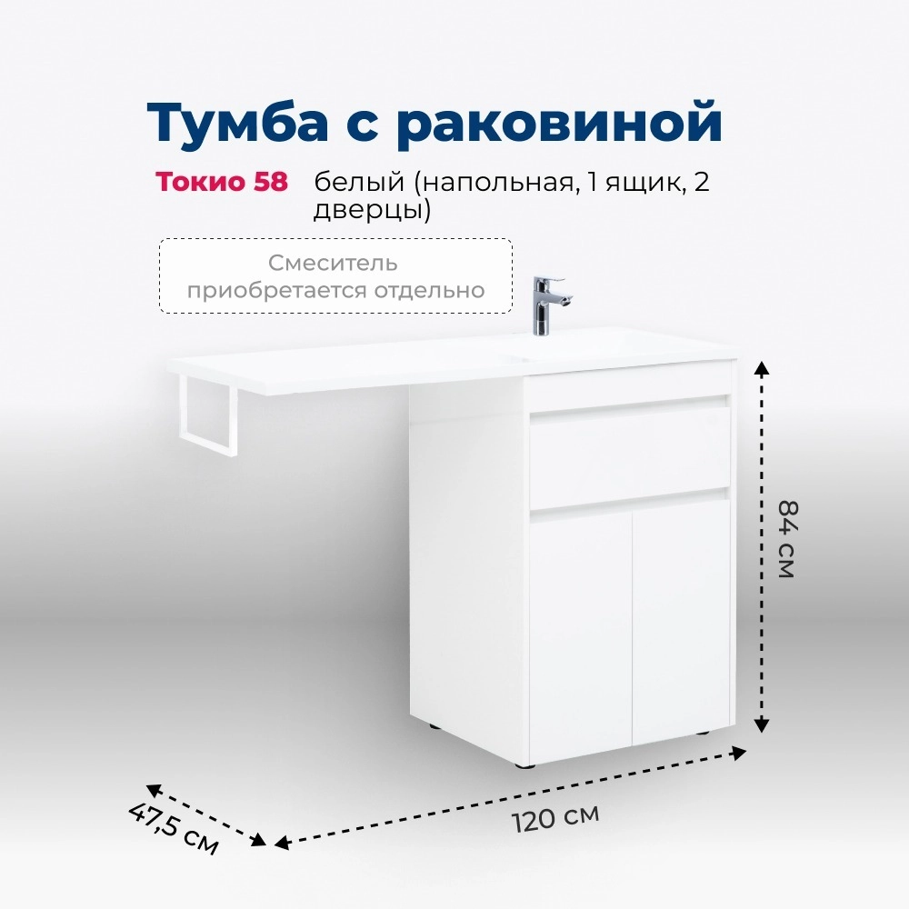 - Тумба под раковину Aquanet Токио 120 (напольная, 1 ящик, 2 дверцы) белого цвета представляет новый формат тумб производства Aquanet.