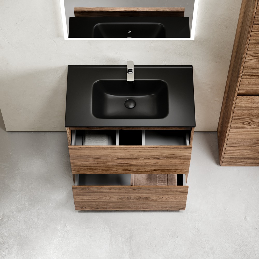 Тумба напольная Sancos Libra Floor 70 см LB70FECH с доводчиком и раковиной-столешницей Element CN7007MB, цвет дуб чарльстон.
