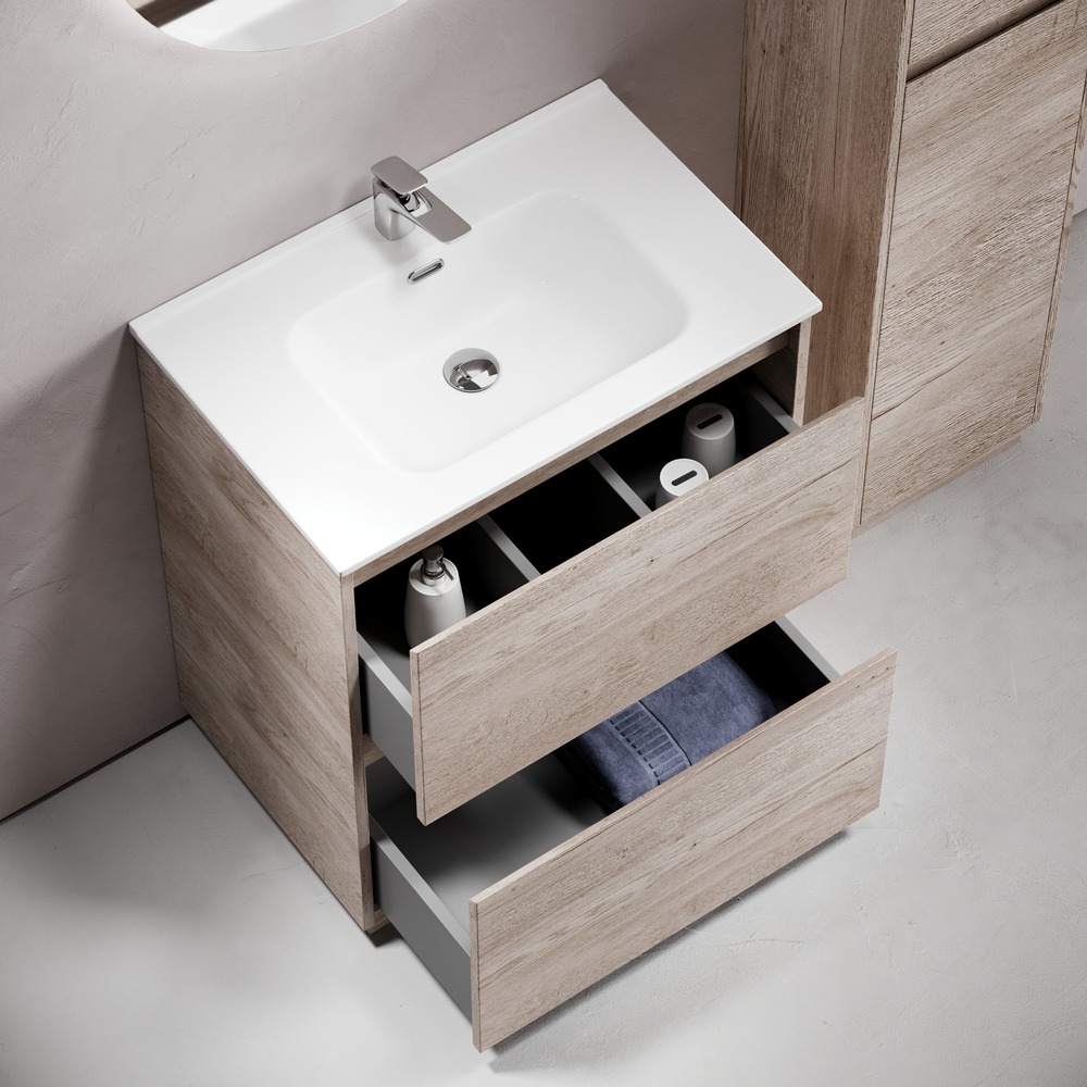 Тумба напольная с раковиной-столешницей Sancos Libra Floor 70 см LB70FEG, дуб галифакс натуральный (раковина Element CN7007)