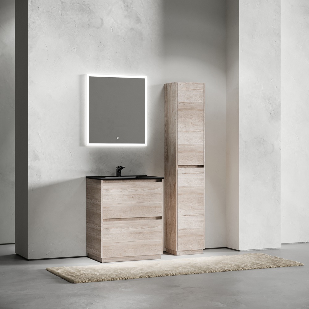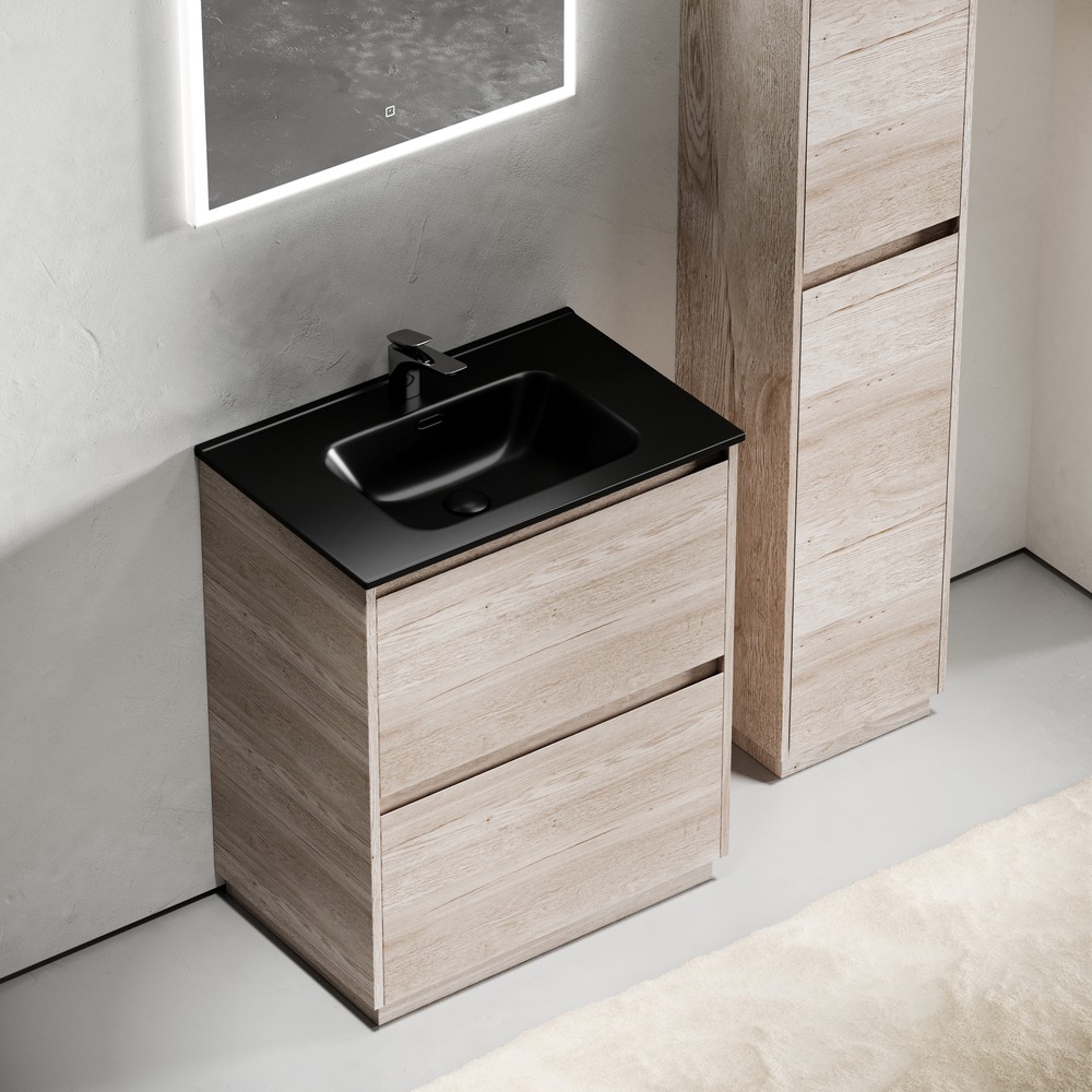 Тумба напольная Sancos Libra Floor 70 см LB70FEG с доводчиком и раковиной-столешницей Element CN7007MB, цвет дуб галифакс натуральный.