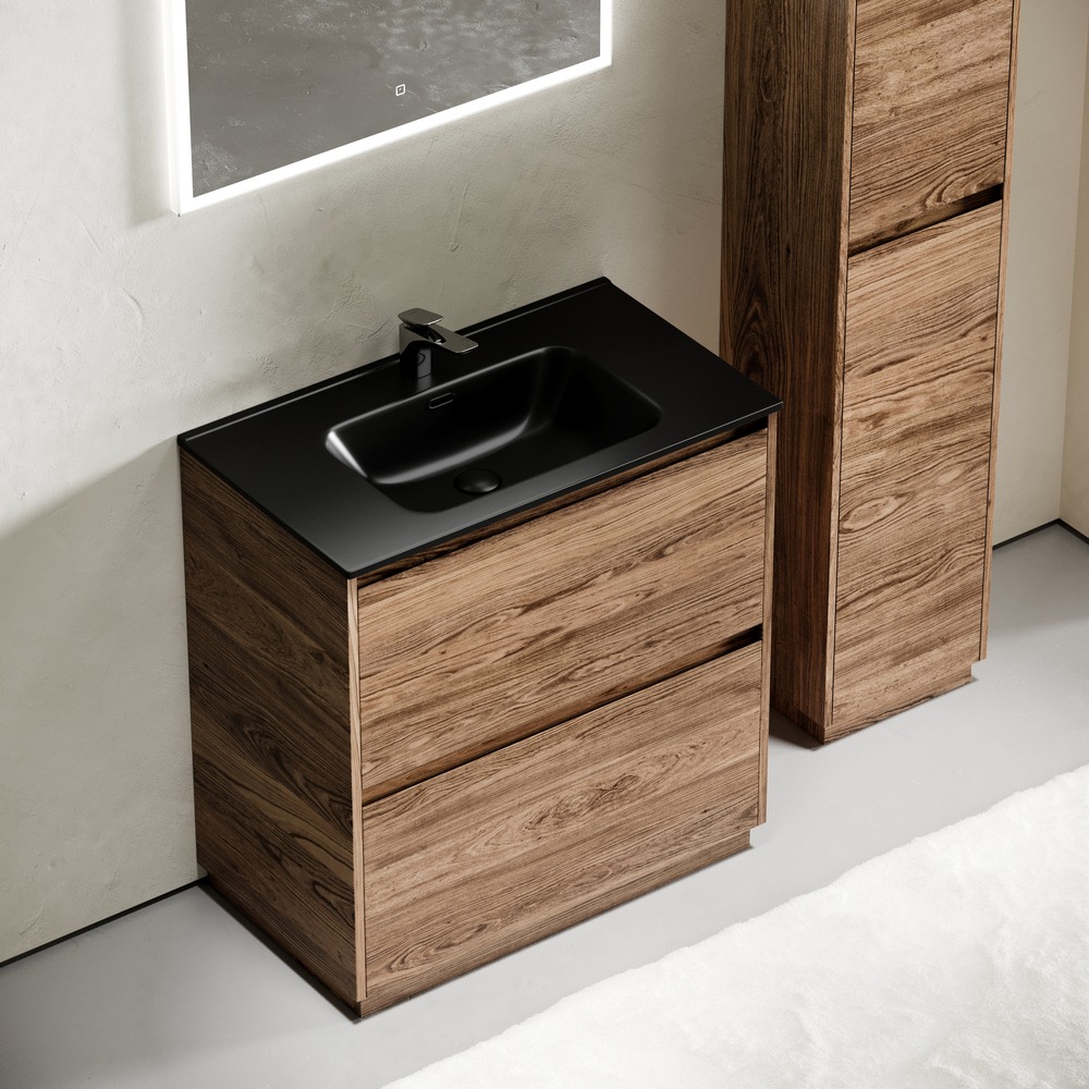 Тумба напольная Sancos Libra Floor 80 см LB80FECH с доводчиком и раковиной-столешницей Element CN7005MB, цвет дуб чарльстон.