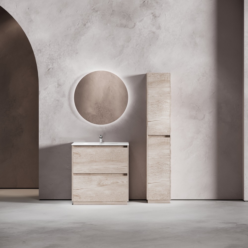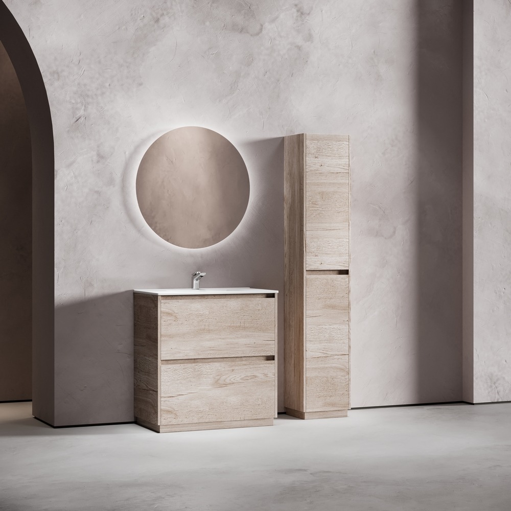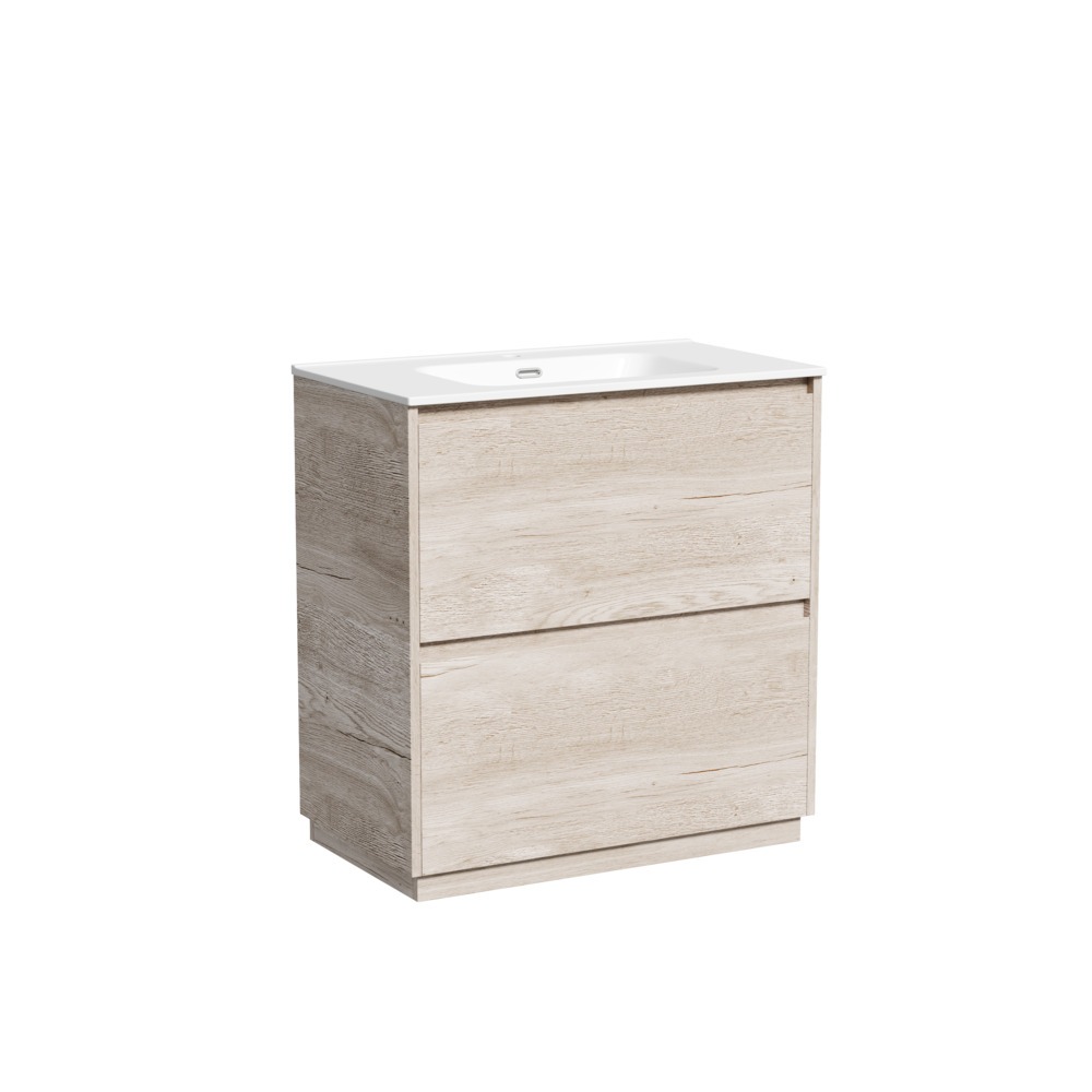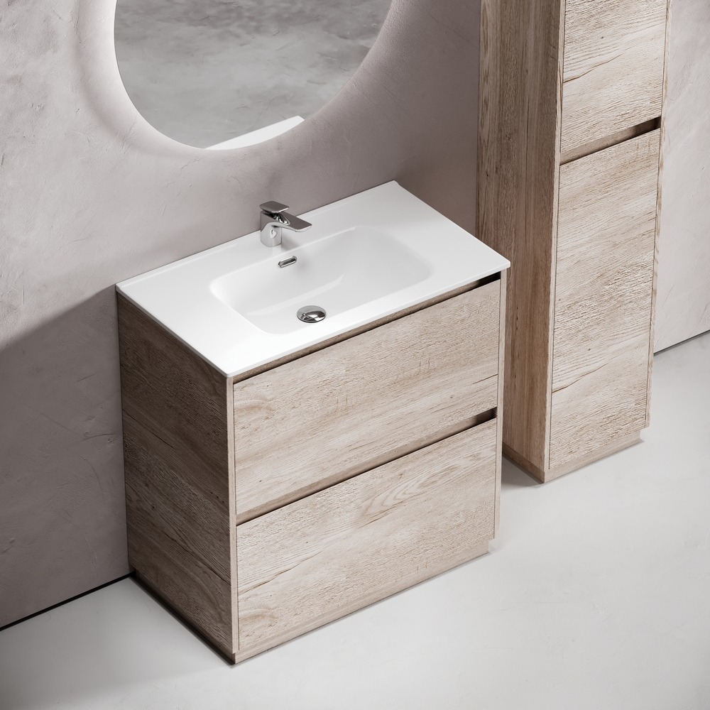 Тумба напольная Sancos Libra Floor 80 см LB80FEG с доводчиком и раковиной-столешницей Element CN7005, цвет дуб галифакс натуральный.