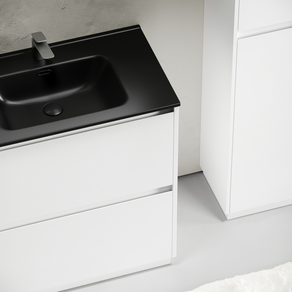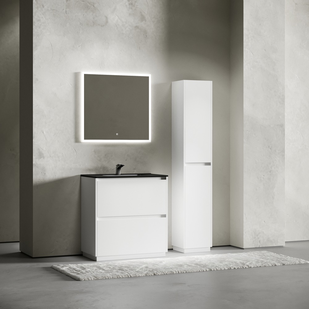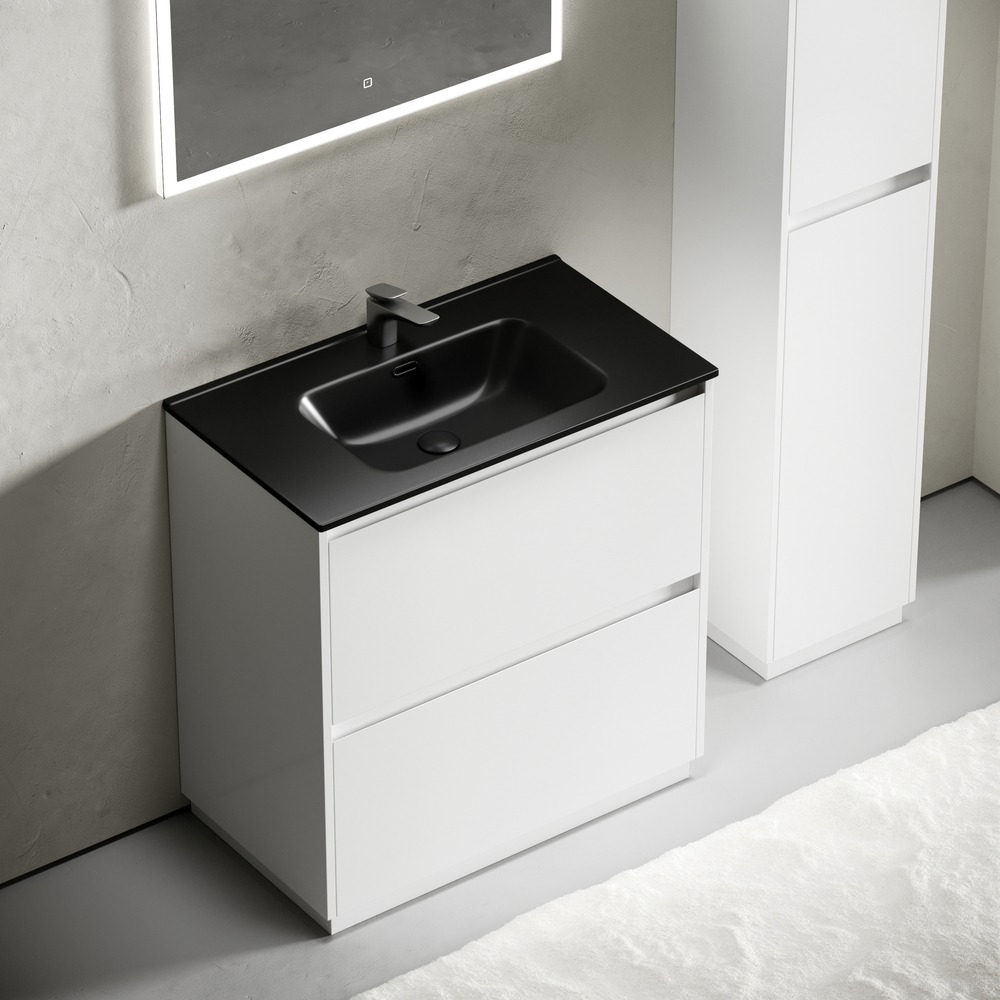 Тумба напольная Sancos Libra Floor 80 см LB80FW с доводчиком и раковиной-столешницей Element CN7005MB, цвет белый глянец.