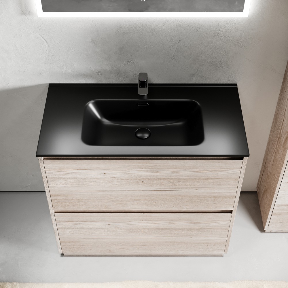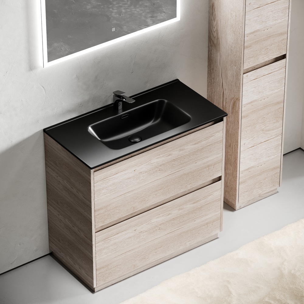 Тумба напольная Sancos Libra Floor 90 см LB90FEG с доводчиком и раковиной-столешницей Element CN7002MB, цвет дуб галифакс натуральный.